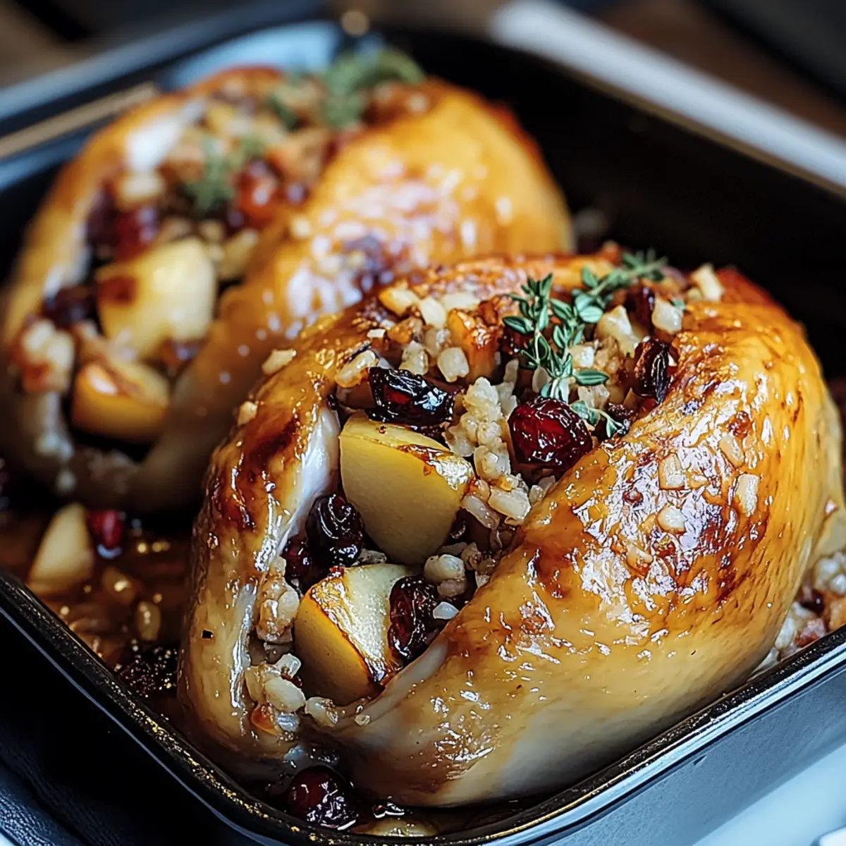 Fruit Fusion: Substitute dried cranberries with apricots or cherries for a unique fruity taste that pairs beautifully with the savory hens.