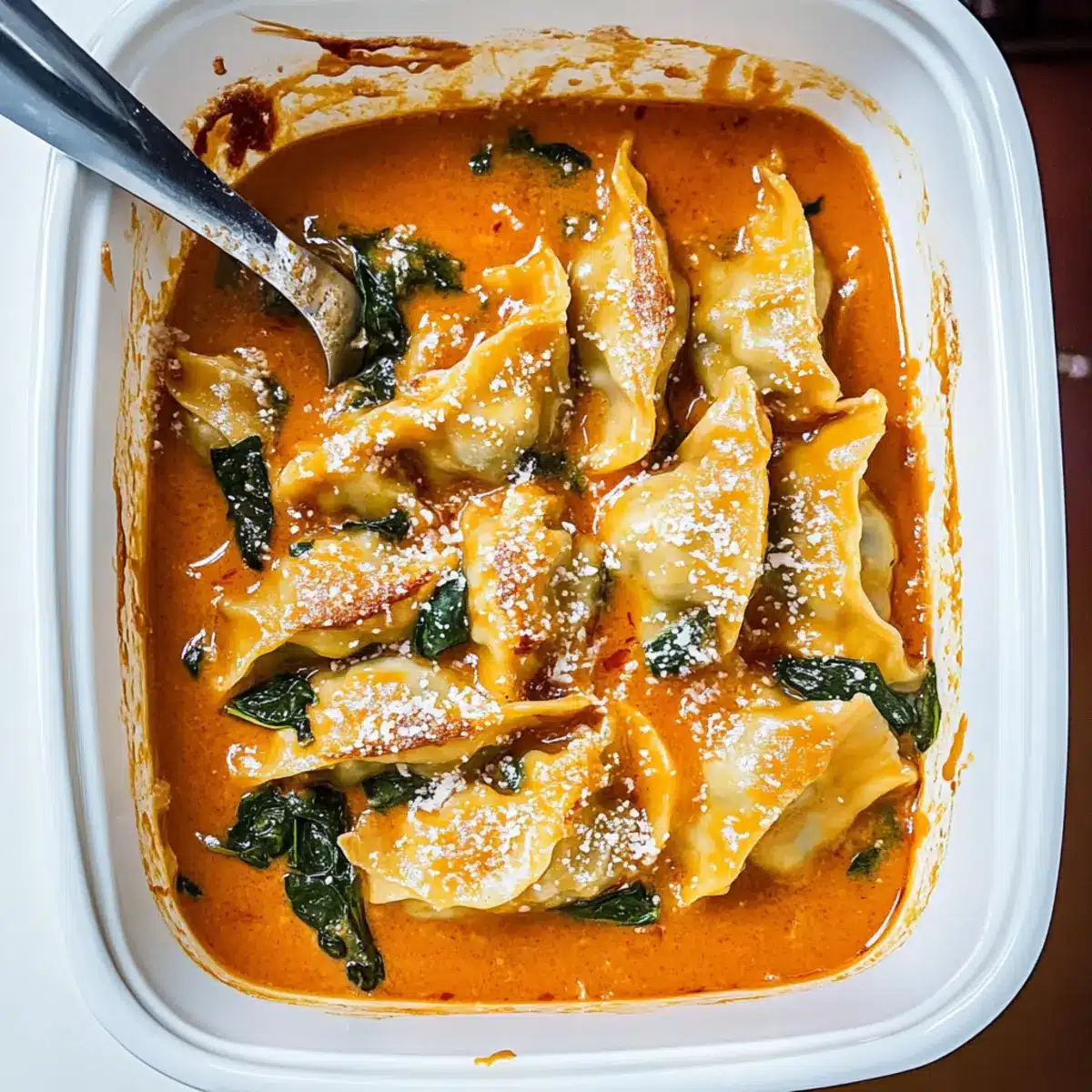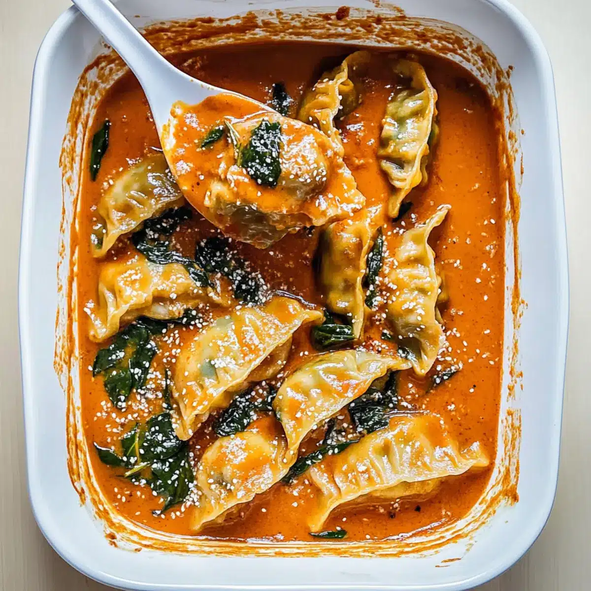 Layering is Key: Lay spinach evenly beneath the dumplings to prevent them from sticking and ensure all flavors meld beautifully.