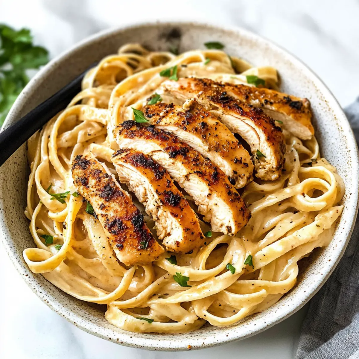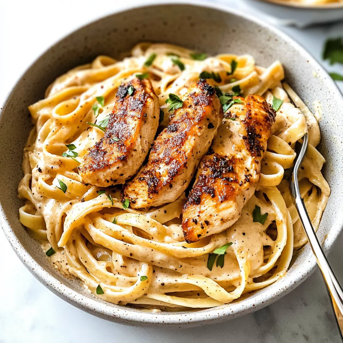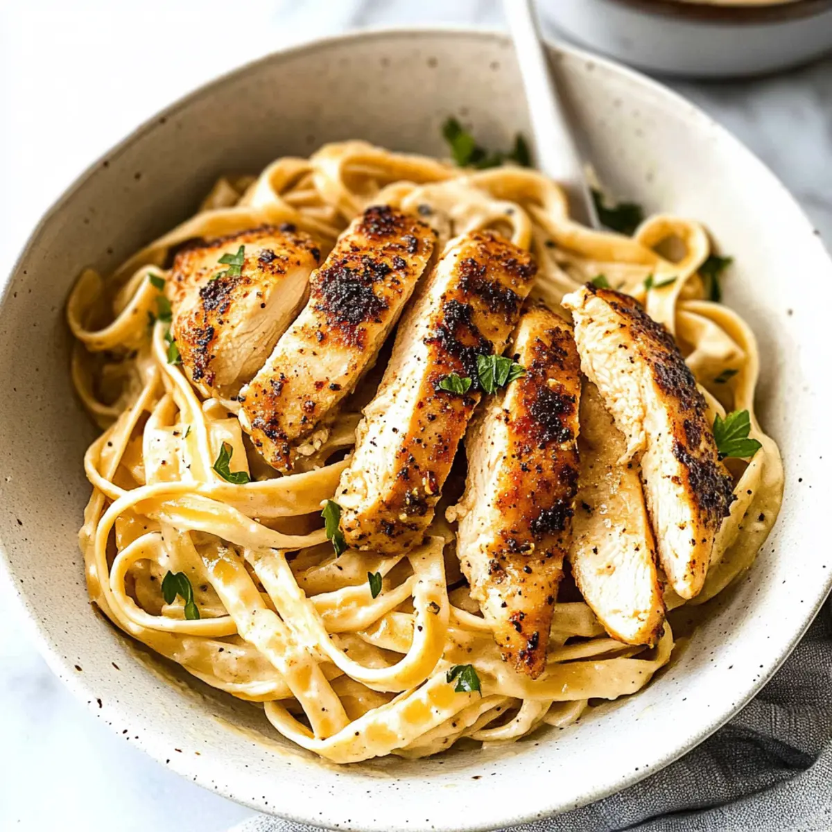 Quick and Easy: You can prepare this dish in under 30 minutes, making it a fantastic choice for busy weeknights. Flavor Explosion: The smoky blackening seasoning paired with the creamy Alfredo sauce delivers a rich, satisfying taste that will wow your taste buds. Customizable: Adjust the spice level to suit your palate or add veggies for extra nutrition; it’s versatile for any dinner table. Crowd-Pleaser: Perfect for families or entertaining, this dish is sure to impress both adults and kids alike. Want a hearty side? Pair it with a fresh Cucumber Tomato Salad or some crusty Garlic Bread for a complete meal!