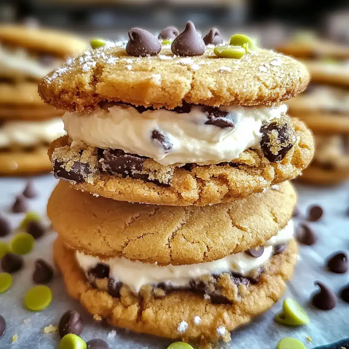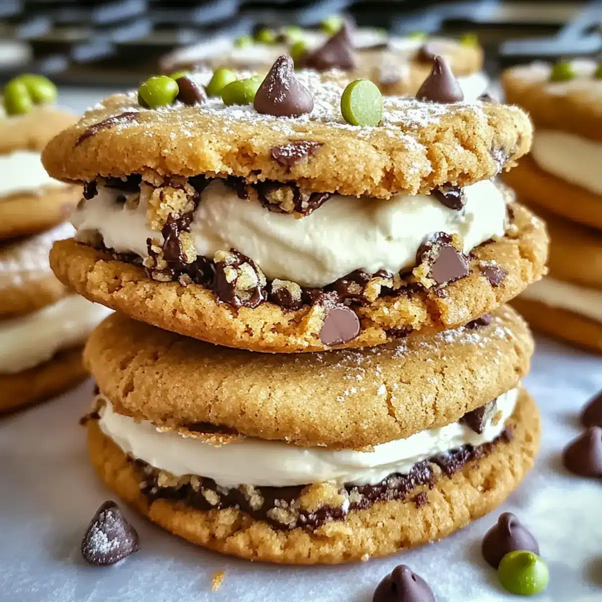 Take one cookie, spread a generous amount of the cannoli cream filling on its underside, and gently top it with another cookie to form a sandwich. This delightful combination is the essence of Cannoli Cream Sandwich Cookies, giving you a rich, creamy bite that beautifully contrasts with the chewy cookies. For an extra touch, consider rolling the edges in more mini chocolate chips or crushed pistachios.