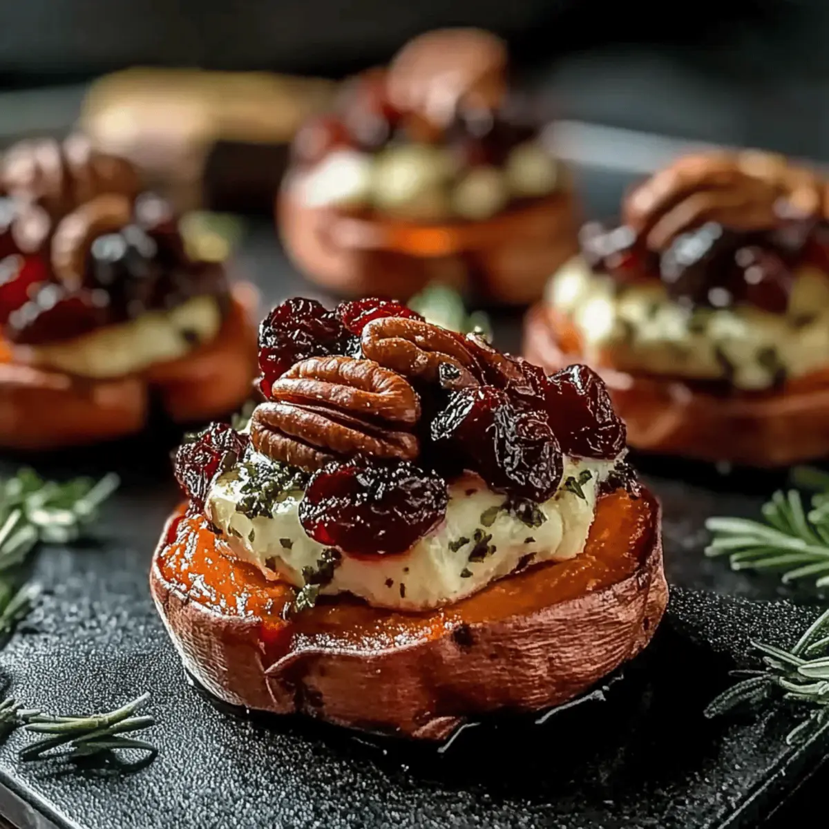 Sweet Potato Rounds with Brie Cranberry and Pecans Delight