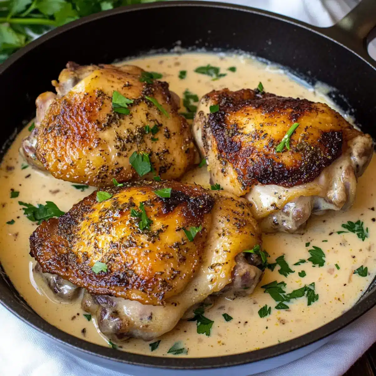 Skillet Chicken Thighs in Creamy Garlic Bliss