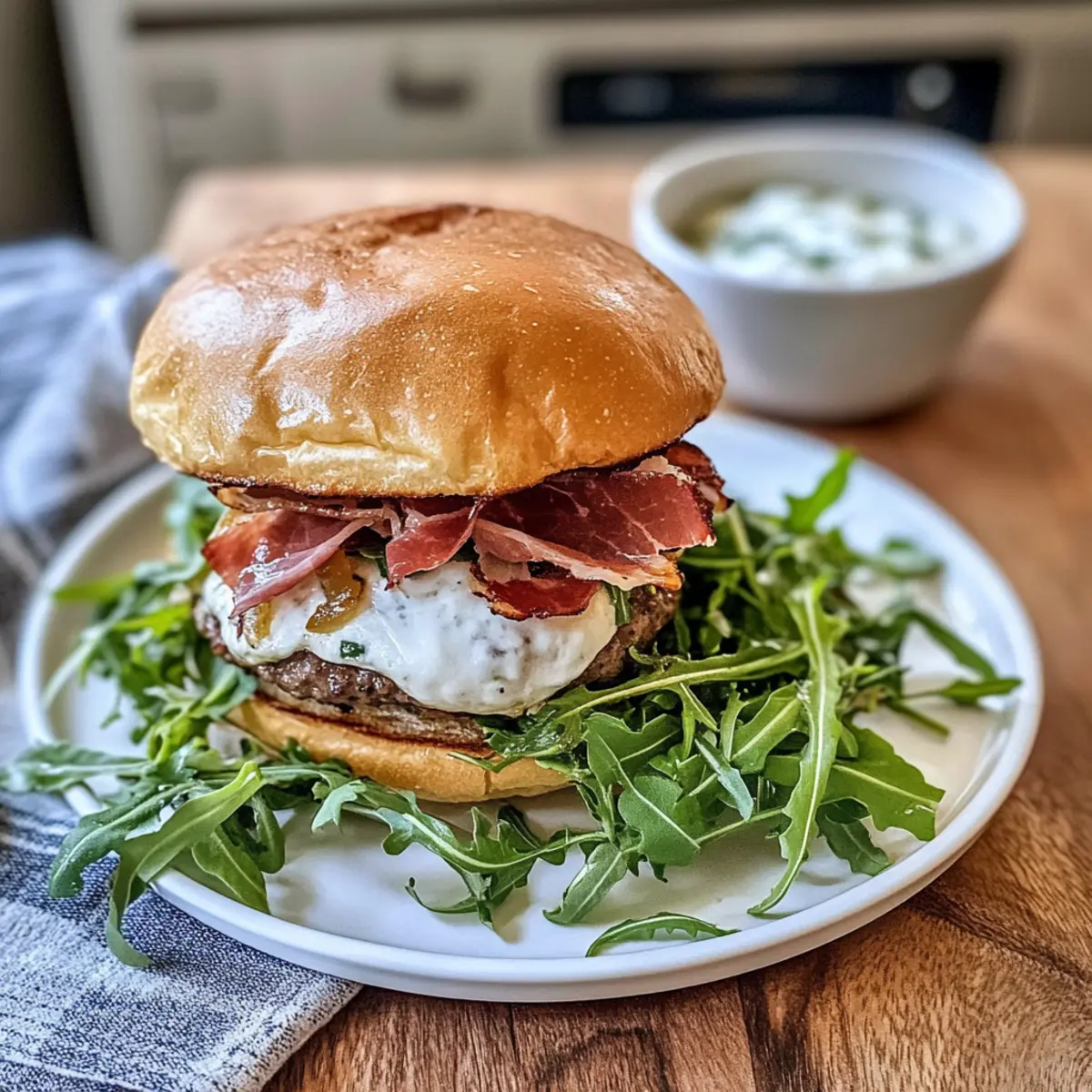 Savor Italian Burger with Crispy Prosciutto and Zesty Aioli