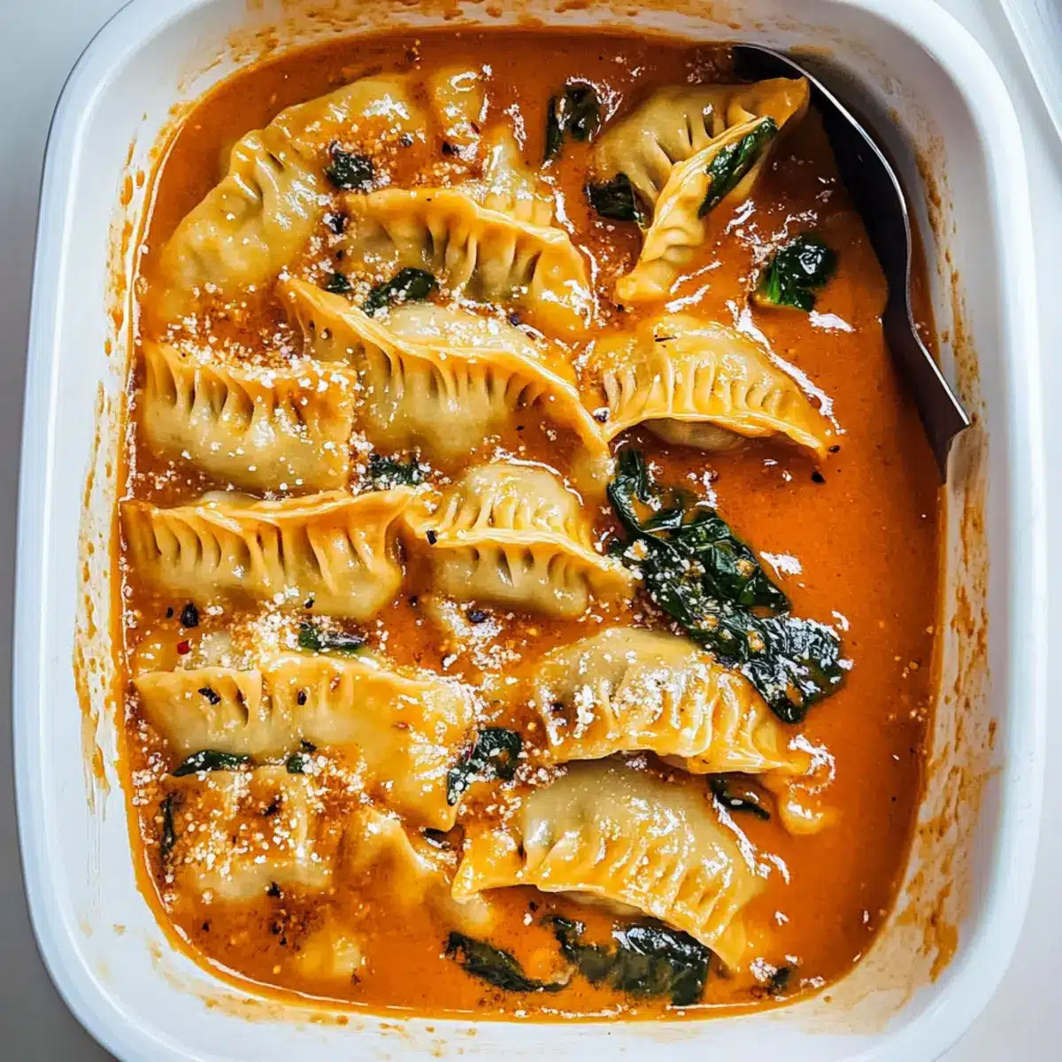 Savory Baked Dumplings in Creamy Red Curry Sauce