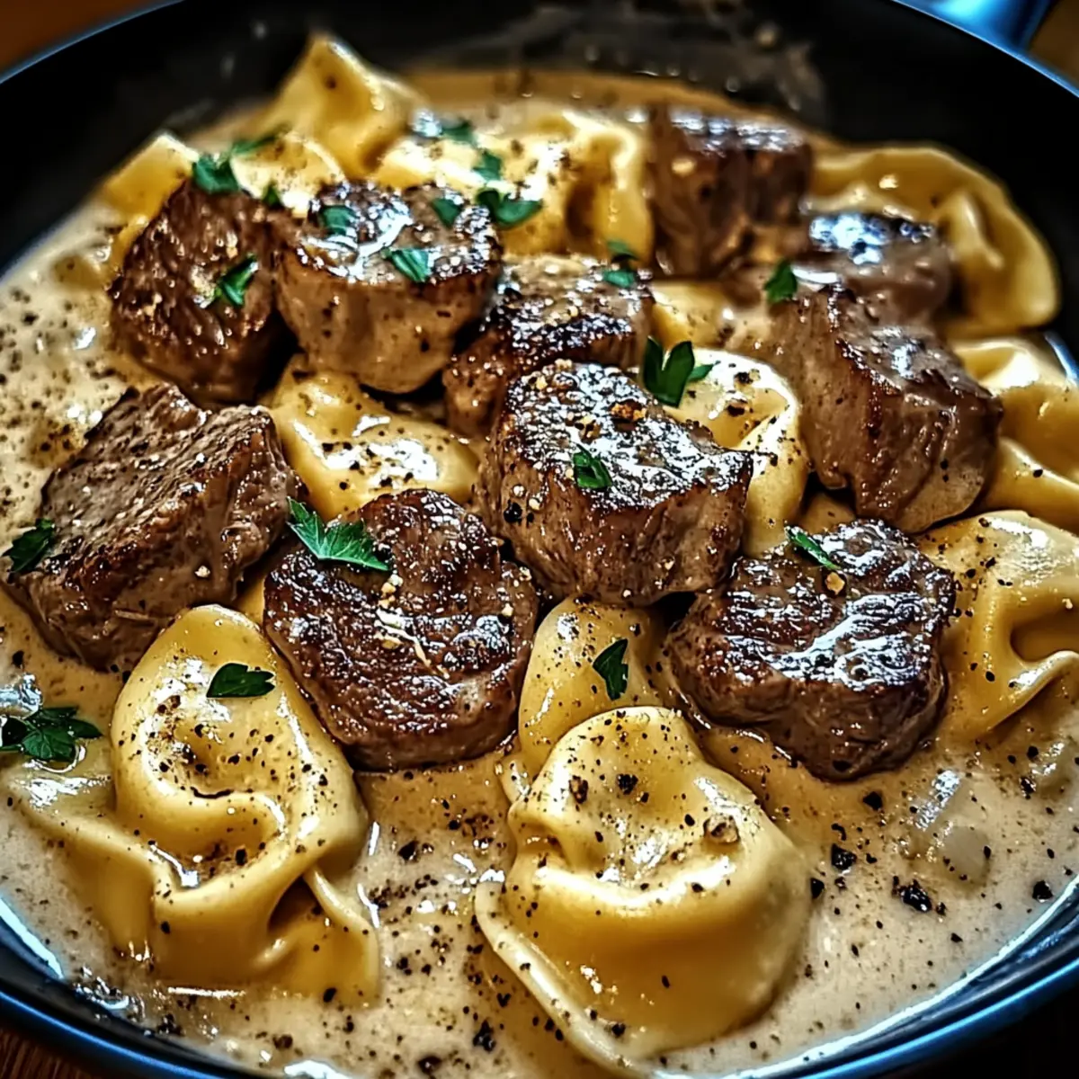 Irresistible Cracked Garlic Steak Tortellini in 30 Minutes