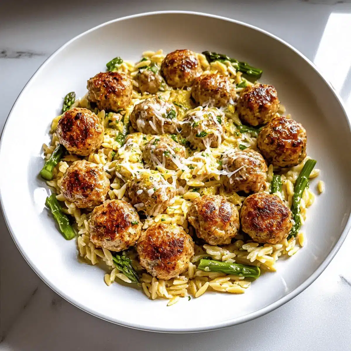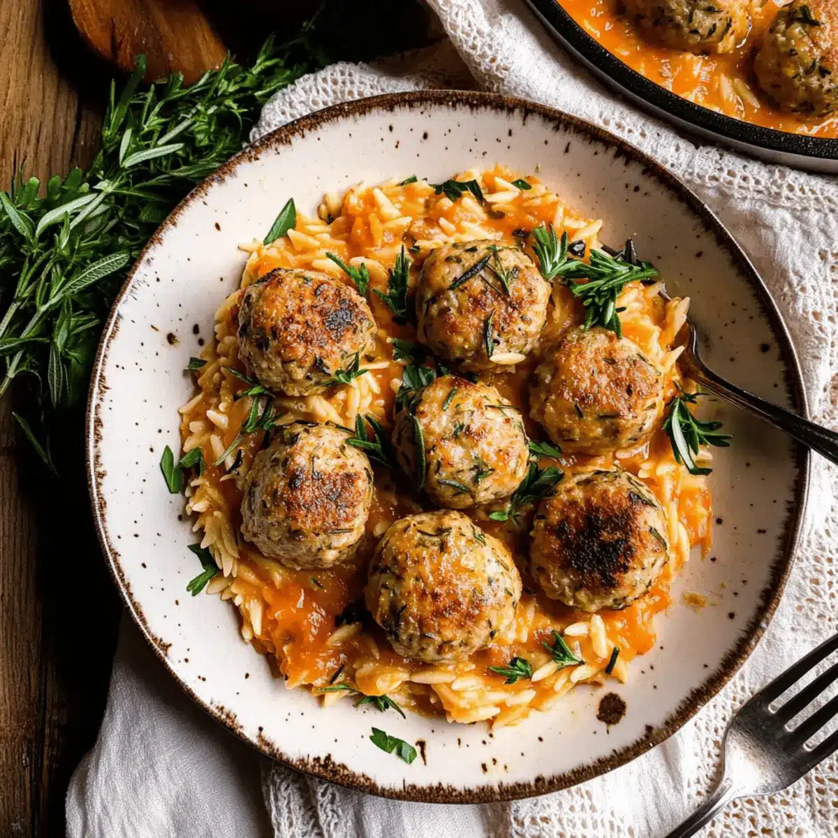 Rosemary Chicken Meatballs & Creamy Tomato Orzo Delight