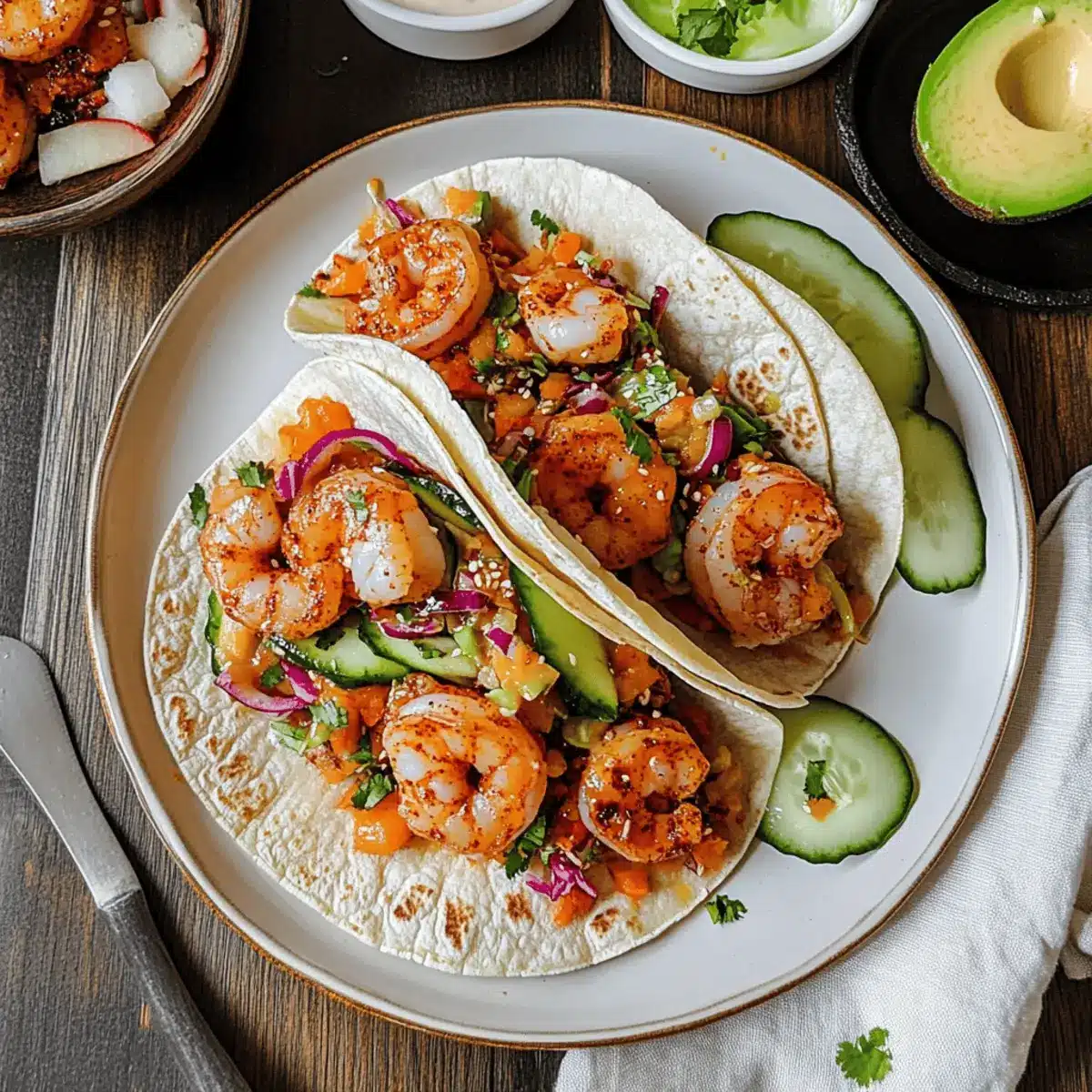 Spicy Gochujang Shrimp Tacos with Crunchy Mango Slaw