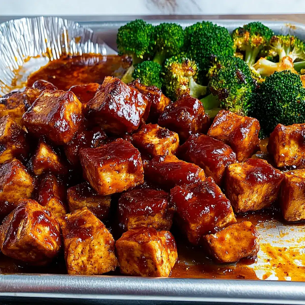 Savory BBQ Sheet-Pan Tofu with Sweet Potatoes & Broccoli