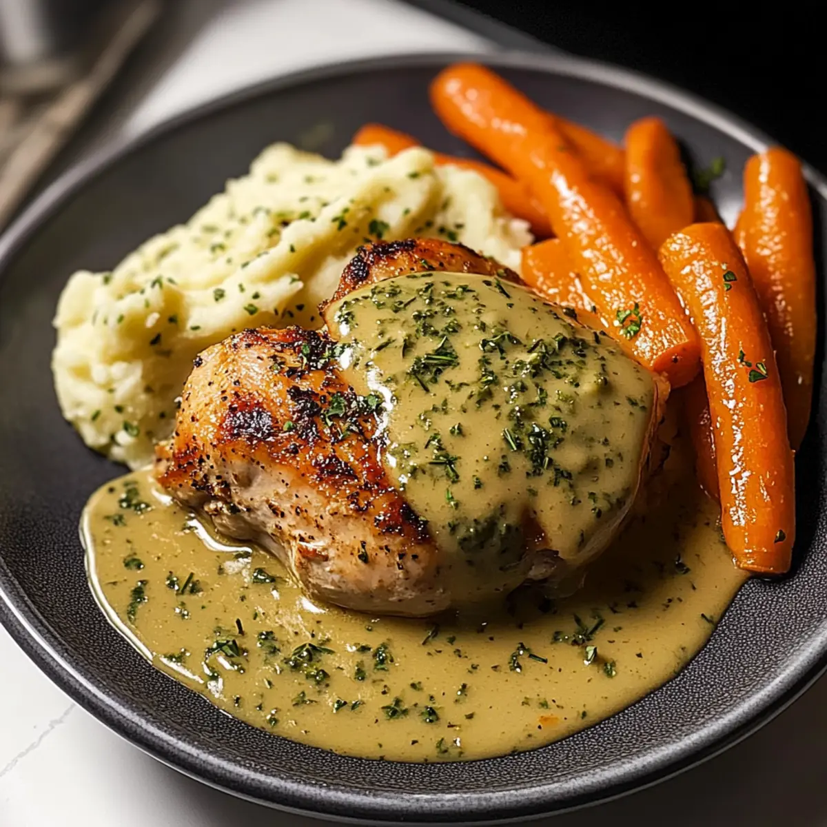 Creamy Herb Chicken with Mashed Potatoes & Glazed Carrots Bliss