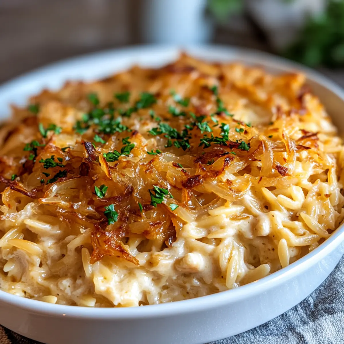 Savory French Onion Chicken Orzo Casserole for Cozy Nights