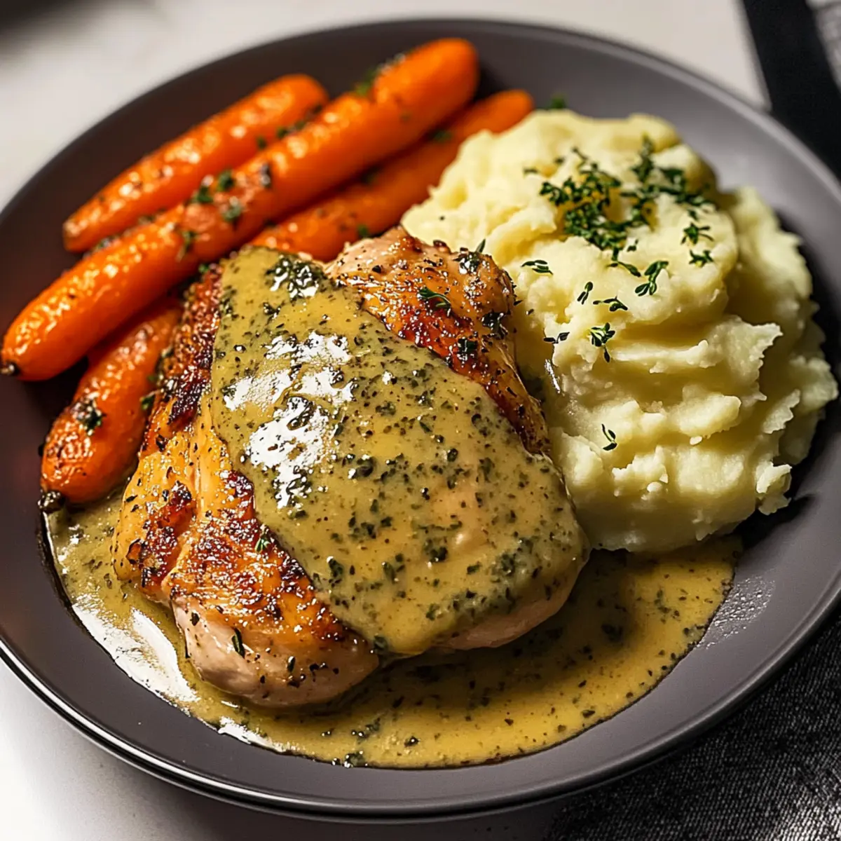 Creamy Herb Chicken with Mashed Potatoes & Glazed Carrots Delight