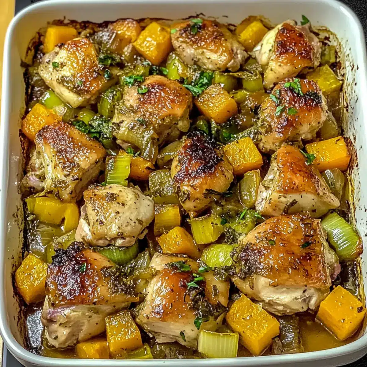 Simplicity at Its Best: You’ll love how effortless it is to create this Hearty Roasted Chicken Leek and Butternut Squash Bake—perfect for busy evenings!