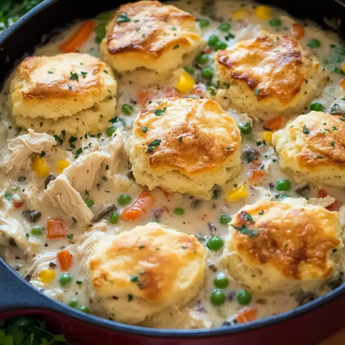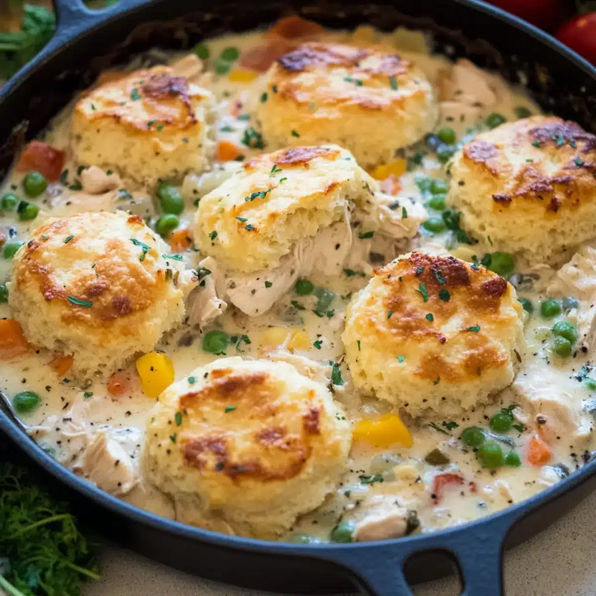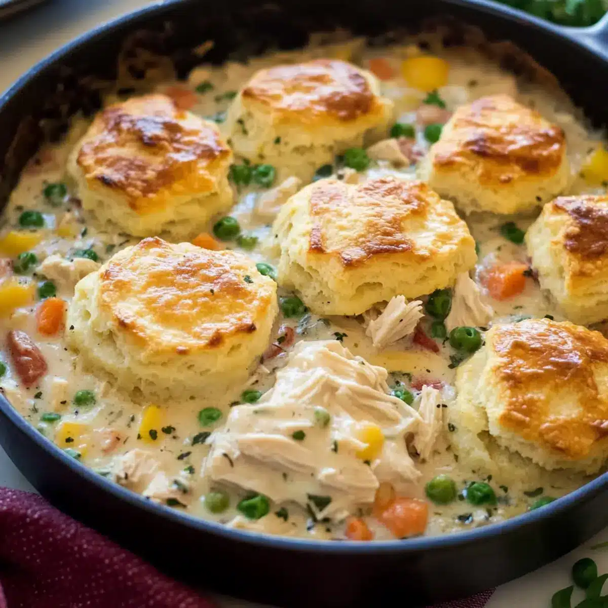 Cozy Up with Chicken Pot Pie and Flaky Biscuits Delight