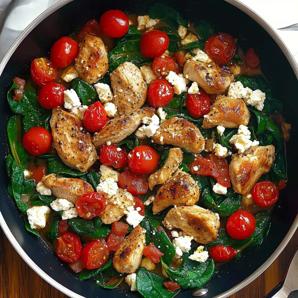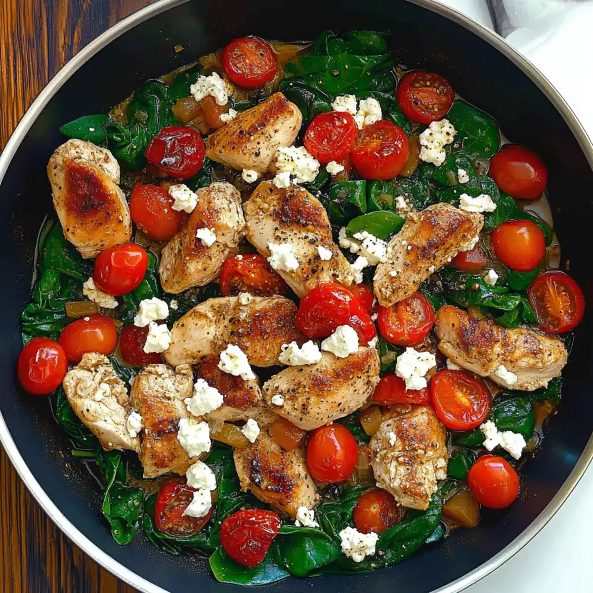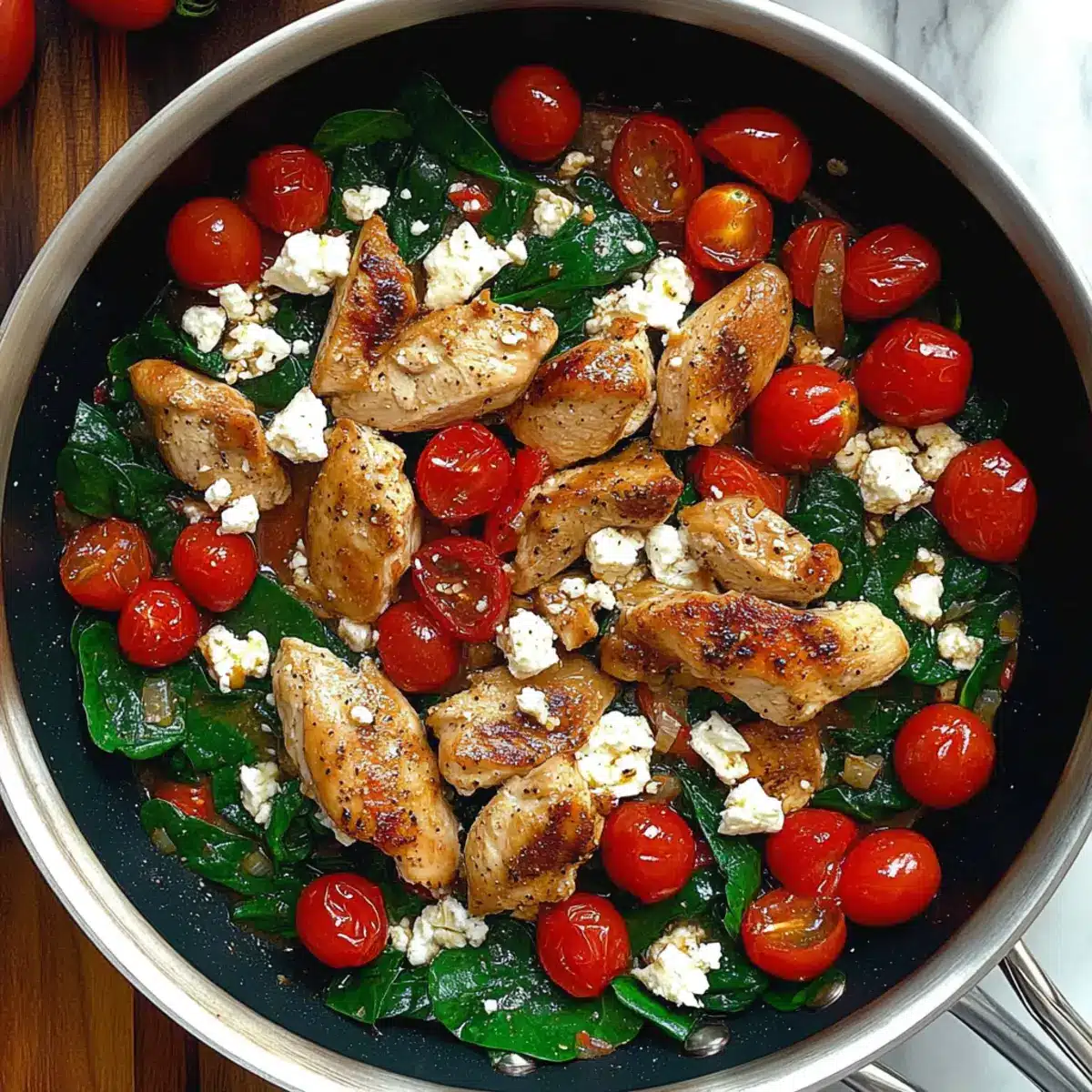 Gently return the cooked chicken to the skillet, stirring to incorporate it with the vegetable and feta mixture. Cook for another 2-3 minutes, allowing everything to heat through and meld together beautifully, ensuring a deliciously warm dish ready for serving.