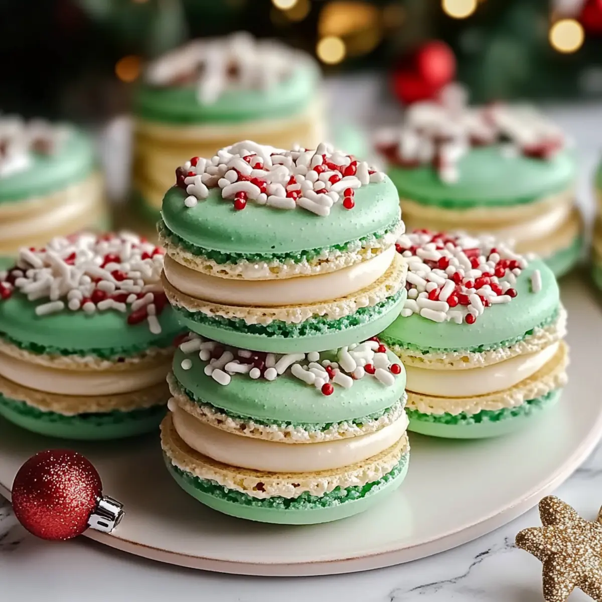 Reheating: Allow frozen macarons to thaw in the fridge overnight before serving for the best texture and flavor. Enjoy the festive delight in every bite!