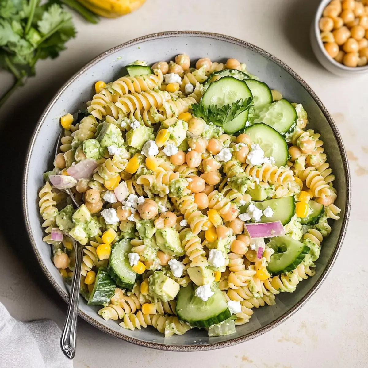 These Cilantro Lime Pasta Salad ingredients can be prepped in advance, saving you precious time on busy days! You can cook the pasta and prepare the dressing up to 24 hours ahead. Simply store the pasta and dressing in airtight containers separately in the refrigerator to maintain their texture and flavor. The combination of chickpeas, corn, cucumber, and red onion can be mixed and stored for up to 5 days, but consider holding off on adding the feta cheese until you’re ready to serve, ensuring it stays fresh and creamy. When it’s time to enjoy your salad, just toss everything together, drizzle with the dressing, and savor the delightful flavors that will taste just as vibrant as when you first made this Cilantro Lime Pasta Salad!