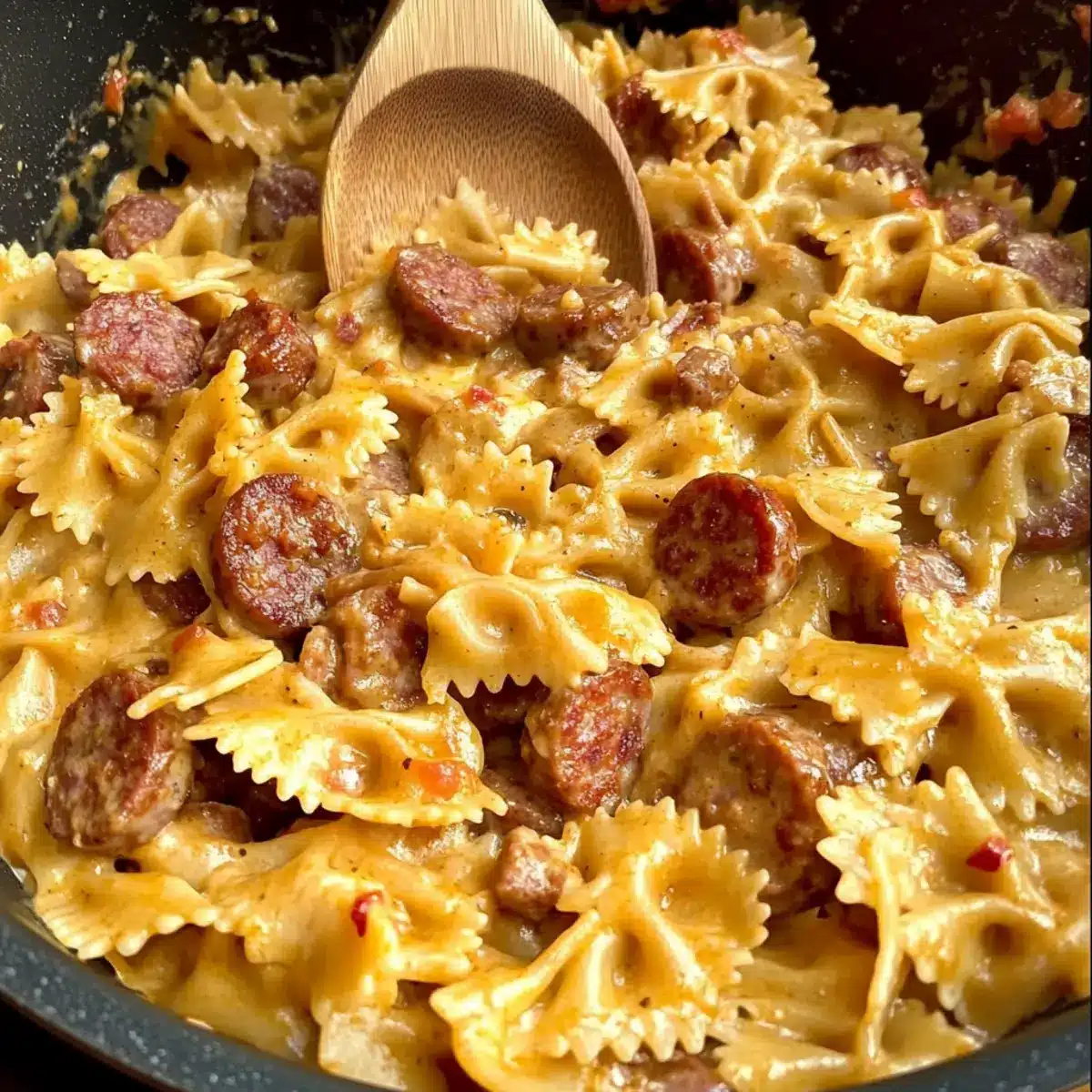 Once the pasta is cooked, stir in the reserved sausage and shredded cheddar cheese. Fold everything together gently until well combined and the cheese has melted into the creamy sauce. This final step brings your Creamy Cajun Sausage Pasta to life, making it rich and deliciously gooey.
