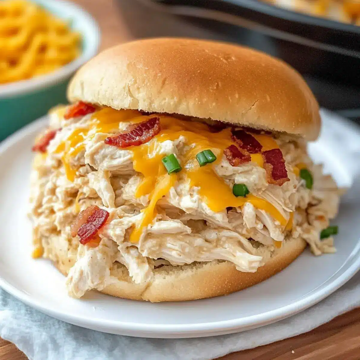 Scoop generous portions of the Creamy Crockpot Crack Chicken onto warm buns or tortillas, making it a delightful meal. Alternatively, serve it as a dip with vegetable sticks for a fun twist. Enjoy your hearty, flavorful dish!