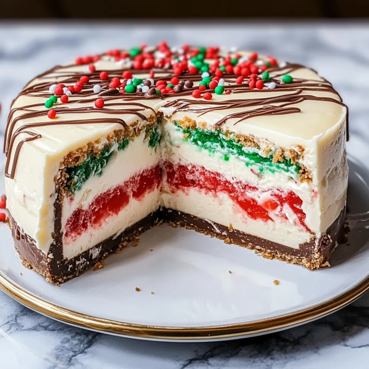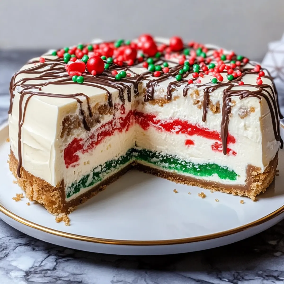 Before serving, carefully release the sides of the springform pan to expose your beautifully set cheesecake. For an extra touch, top the cheesecake with a drizzle of chocolate sauce or a dollop of whipped cream. Slice and enjoy this festive treat, perfect for sharing with friends and family during the holiday season!