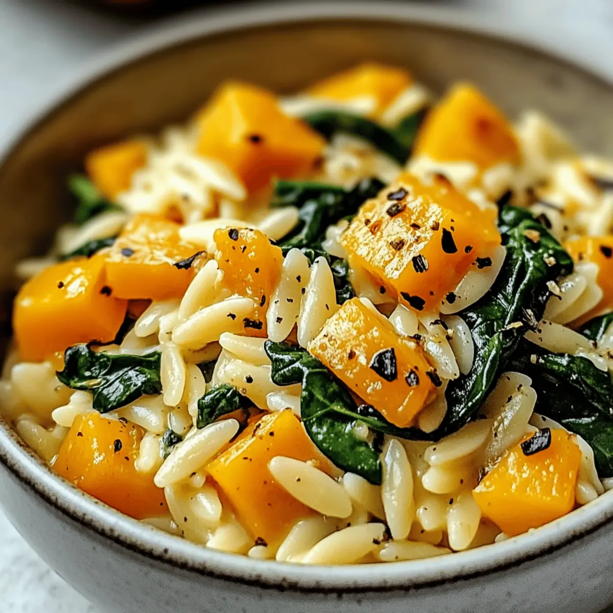 Creamy Orzo with Roasted Butternut Squash and Spinach Bliss