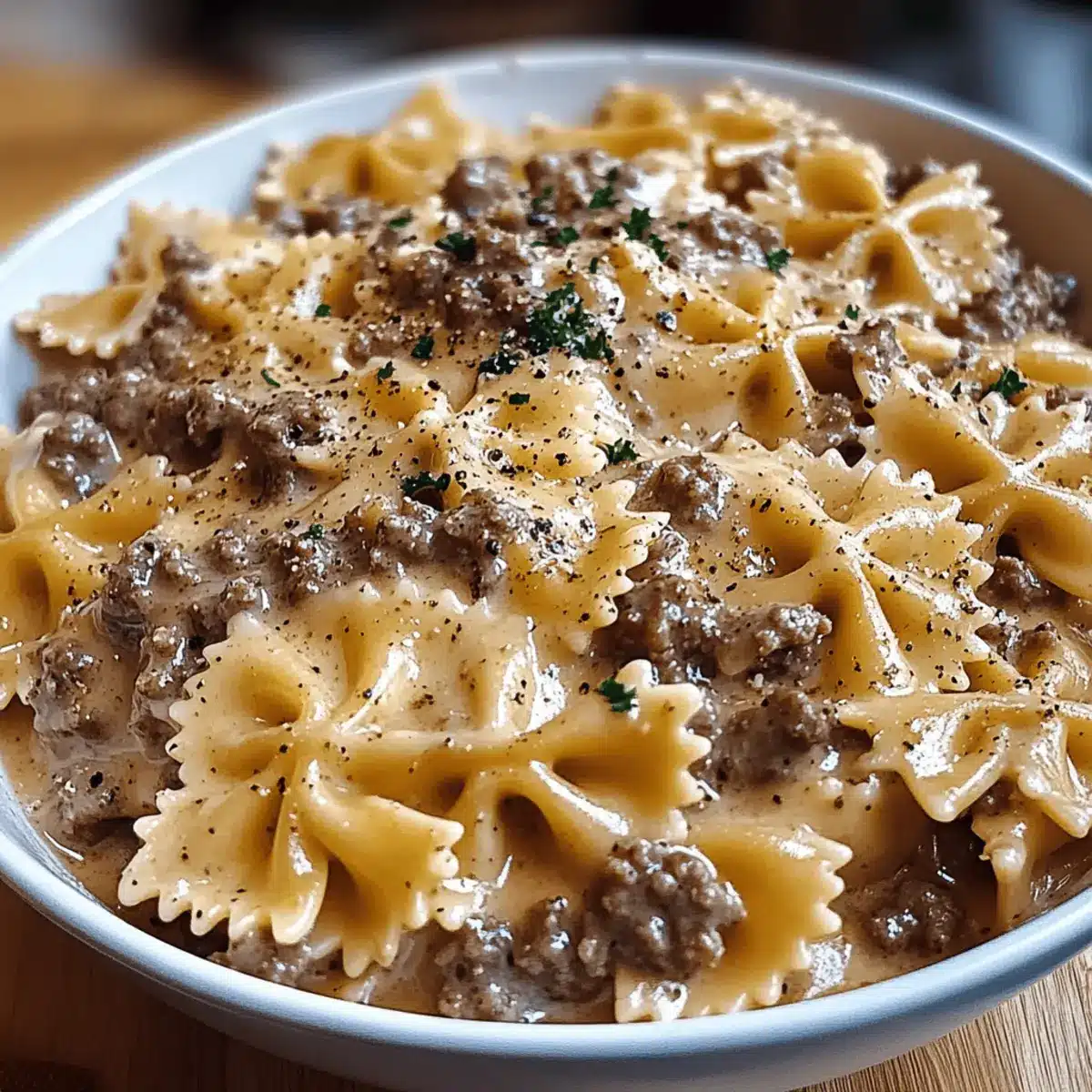 Creamy Parmesan Garlic Beef Bowtie Pasta for Cozy Nights
