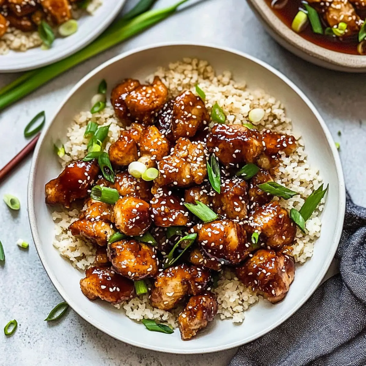 Hibachi-Style Fried Rice: A classic pairing, this rice dish is flavorful and complements the sweet sauce of the chicken beautifully.