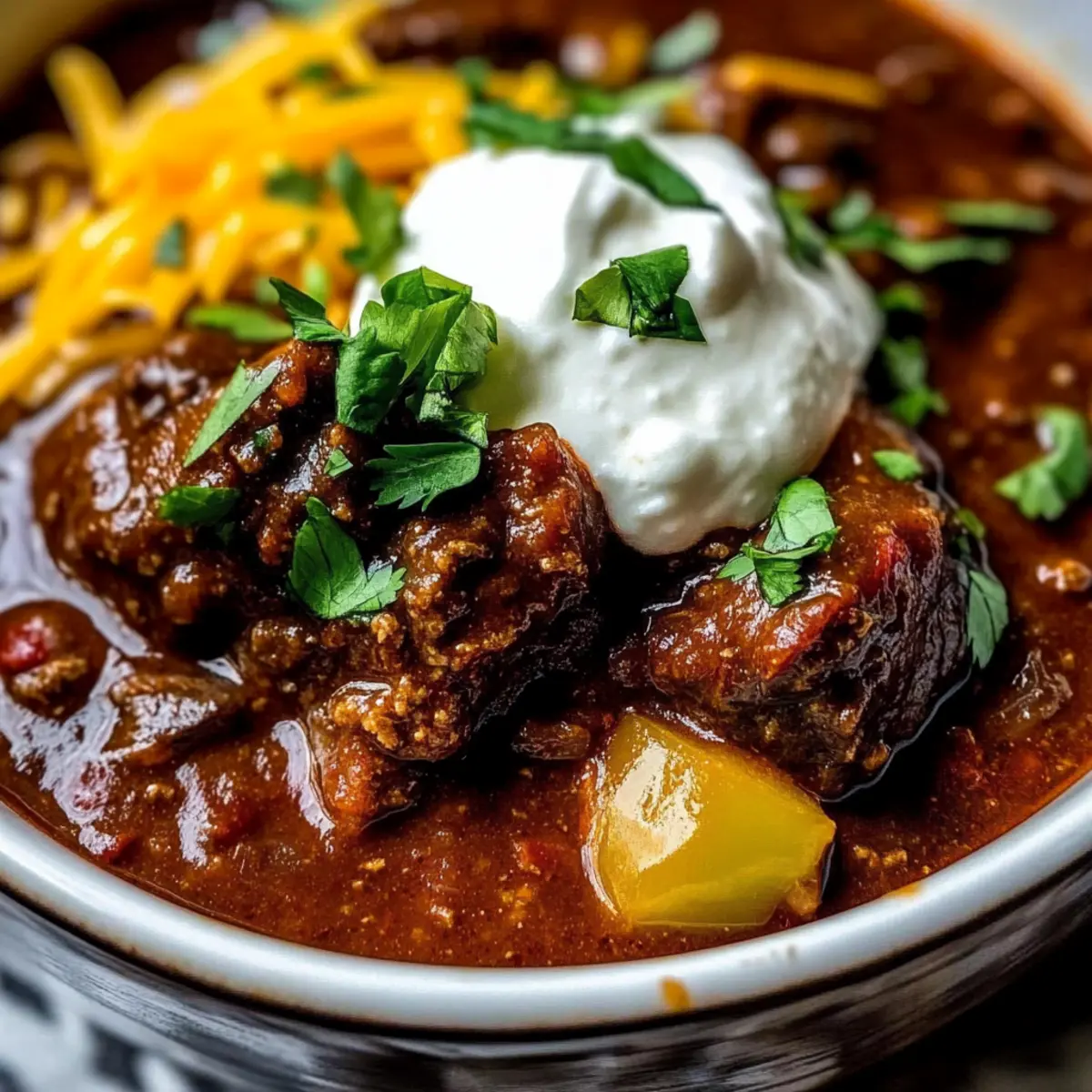 Creamy Finish: For an unforgettable touch, stir in a bit of sour cream or Greek yogurt just before serving for creaminess that contrasts with the chili’s warmth.