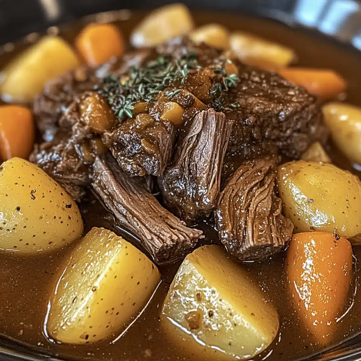Chuck Roast – The star of the dish; its marbling keeps it juicy and tender throughout cooking.