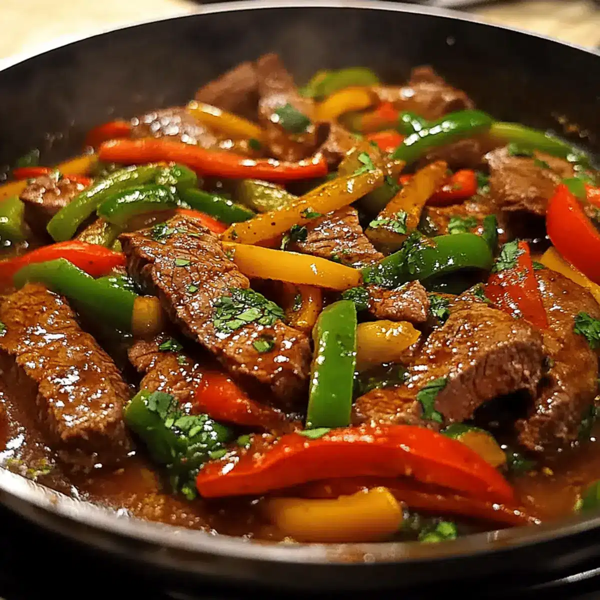 As the sizzling sound of tender beef meets the vibrant snap of fresh bell peppers, my kitchen transforms into a bustling Asian bistro. This Delicious Pepper Steak Recipe brings the kind of comfort that makes weeknight dinners feel special and fancy—without the fuss. Perfect for those of us who crave homemade flavors but also need something quick and easy, this stir-fry is a weeknight savior. With gluten-free and low-carb options available, it’s a meal that caters to all and keeps everyone satisfied. Imagine serving it over fluffy jasmine rice or cradled in a crisp lettuce wrap—the possibilities are deliciously endless! What twist will you add to make this dish your own?