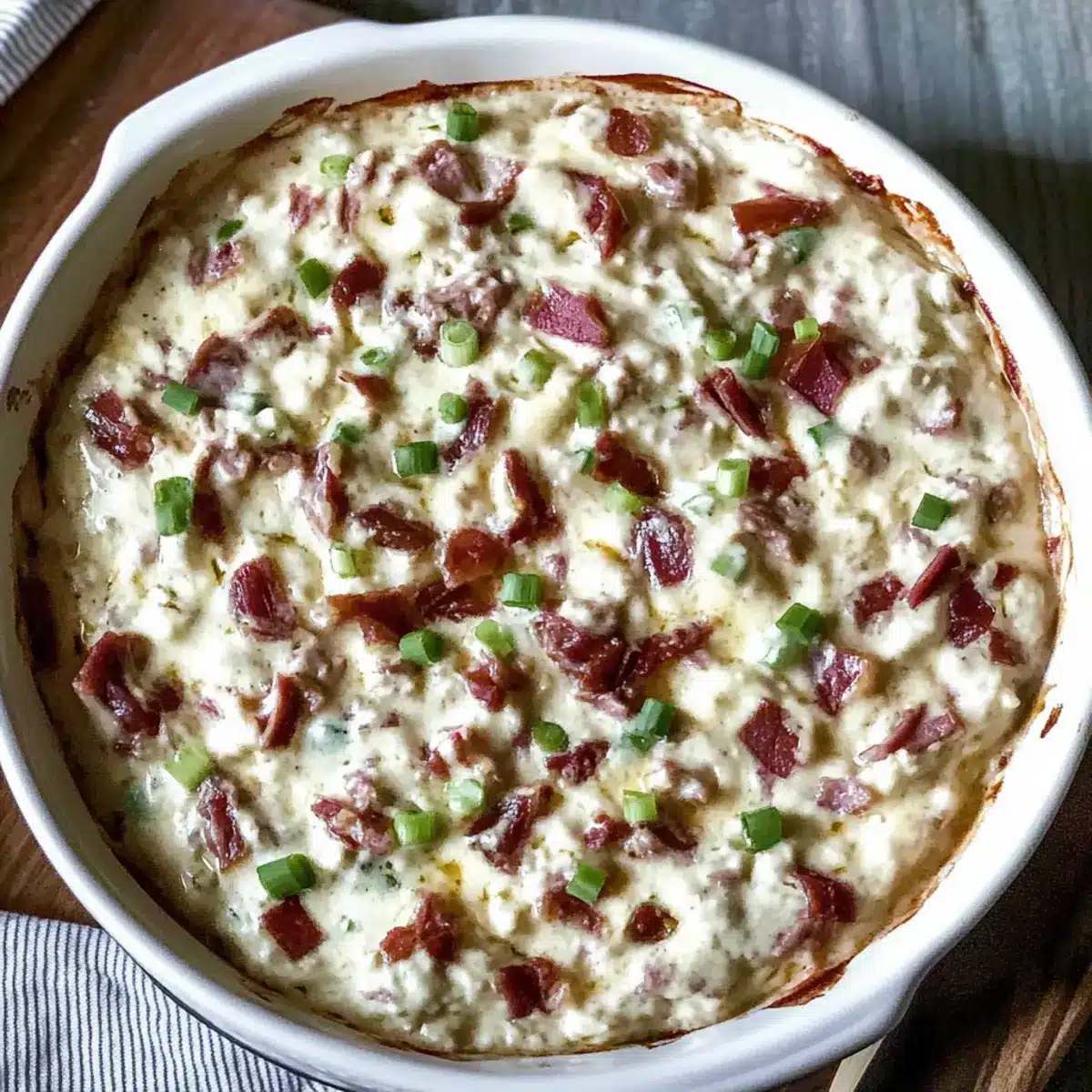 Avoid Overmixing: When folding in the chipped beef and onions, mix gently to prevent the dip from becoming too dense; you want a rich, creamy consistency.