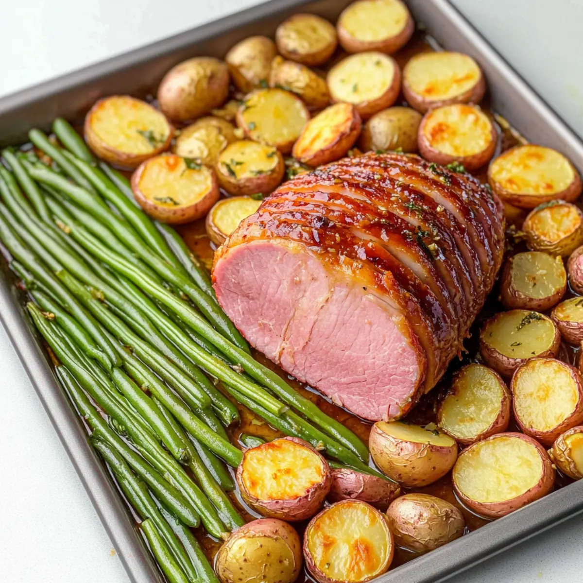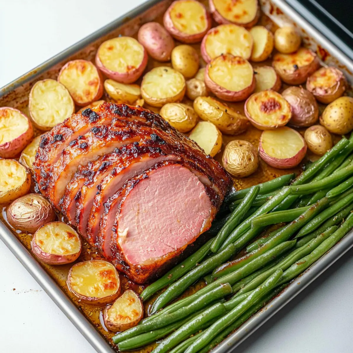 Roasted Carrots: Sweet and tender roasted carrots enhance the veggie medley while adding a pop of color, complementing the glaze of the ham. Their natural sweetness pairs beautifully with the savory flavors of your sheet pan dinner.