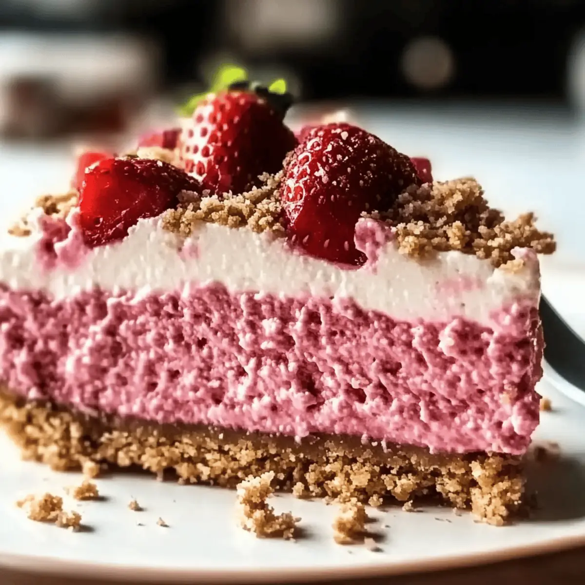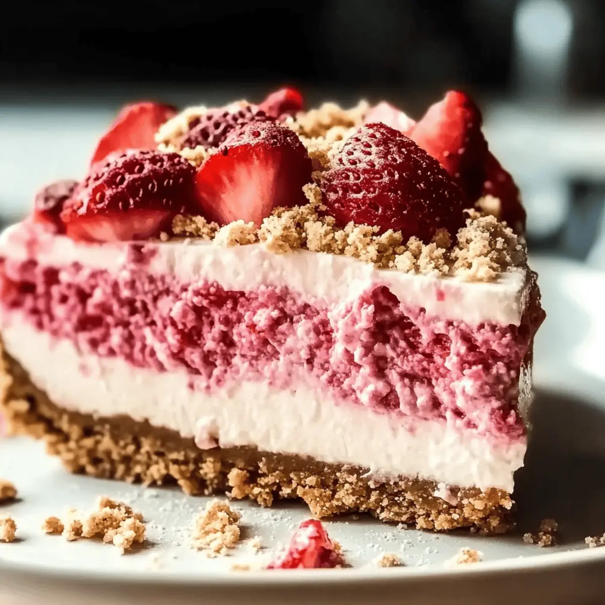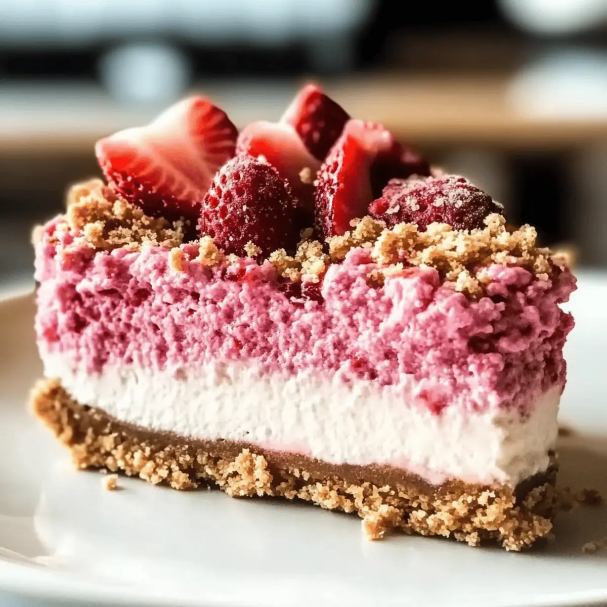 Get ready to savor your slice of this Easy Vegan No-Bake Strawberry Crunch Cheesecake!