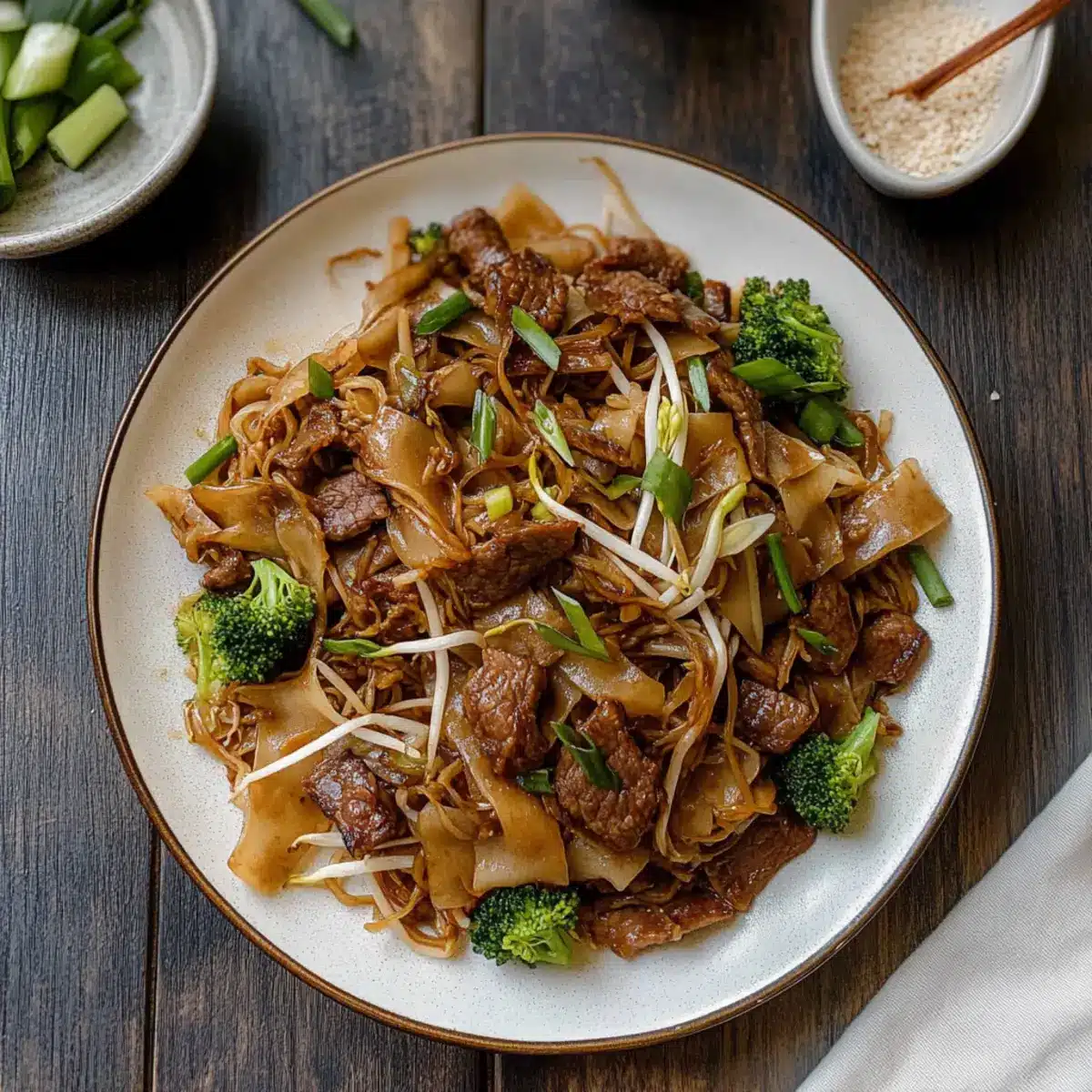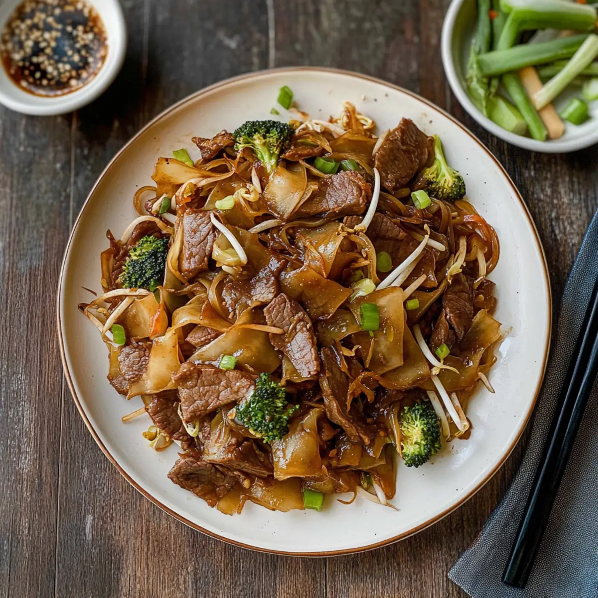 As the sizzling aroma of stir-fried garlic fills the kitchen, my taste buds start to dance in anticipation. Today, I’m sharing my delicious take on Vietnamese Flat Rice Noodles with Beef (Hu Tieu Ap Chao), a comforting dish that strikes the perfect balance between savory and sweet. This vibrant recipe features wide, chewy rice noodles, tender beef strips, and a medley of fresh vegetables, making it a delightful choice for busy weeknights or family gatherings. With just 45 minutes of prep time, it’s an easy way to bring a taste of Asia into your home and leave fast food behind. Plus, it’s a family-friendly meal that everyone will adore. Curious about how to whip up this savory masterpiece? Let’s dive into the magic of Hu Tieu Ap Chao!