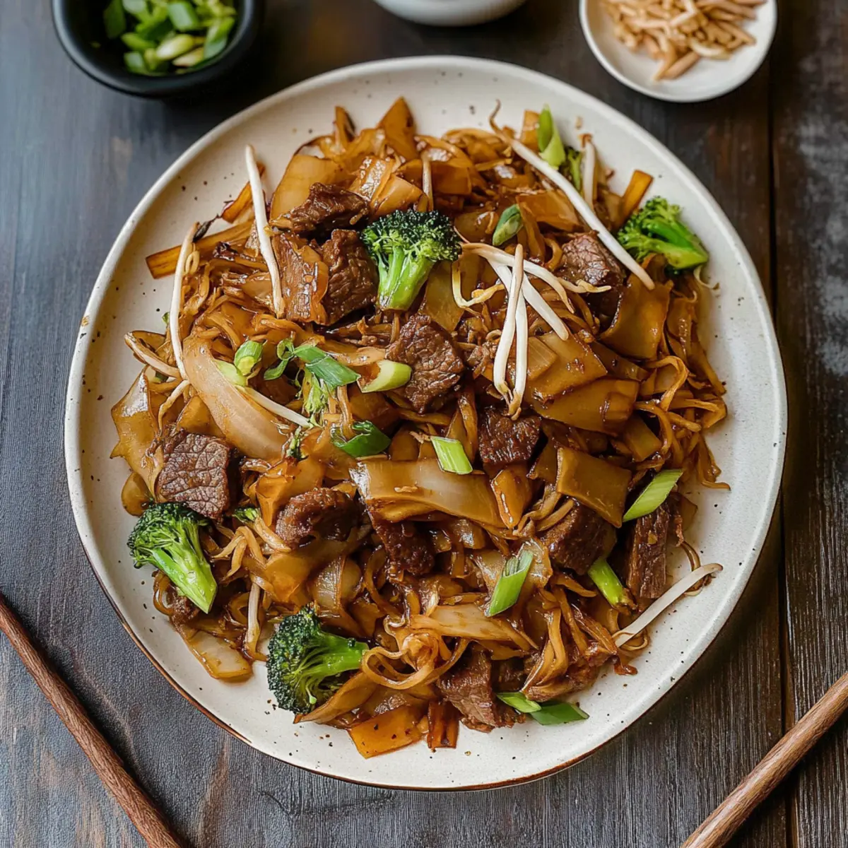 When choosing your ingredients, freshness is key! Look for rice noodles labeled as “fresh” when possible; they have a better texture. For the beef, opt for cuts with good marbling like ribeye or flank, which will be tender and flavorful. For vegetables, select bright green Chinese broccoli free of dark spots and firm bean sprouts that crunch when you bite into them.