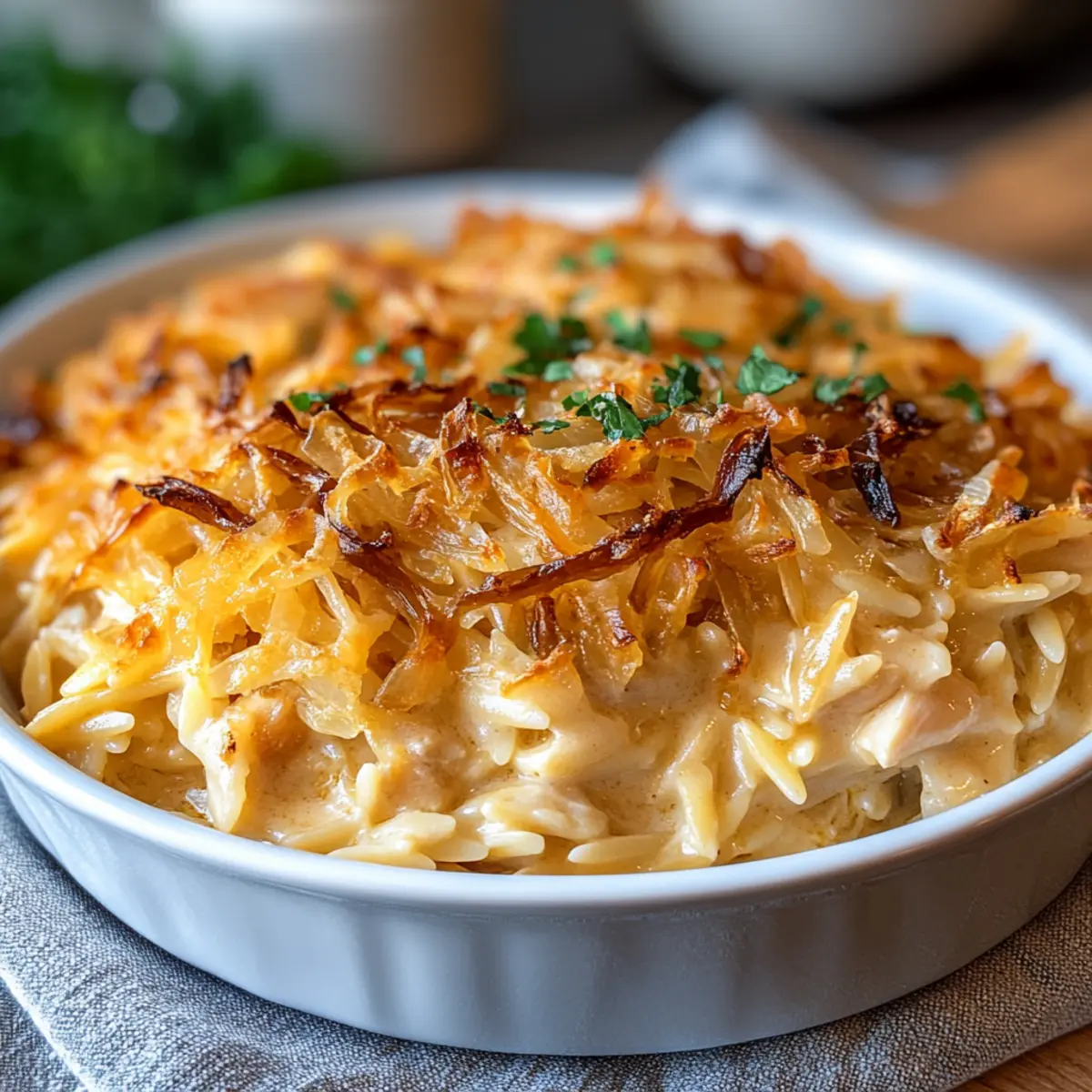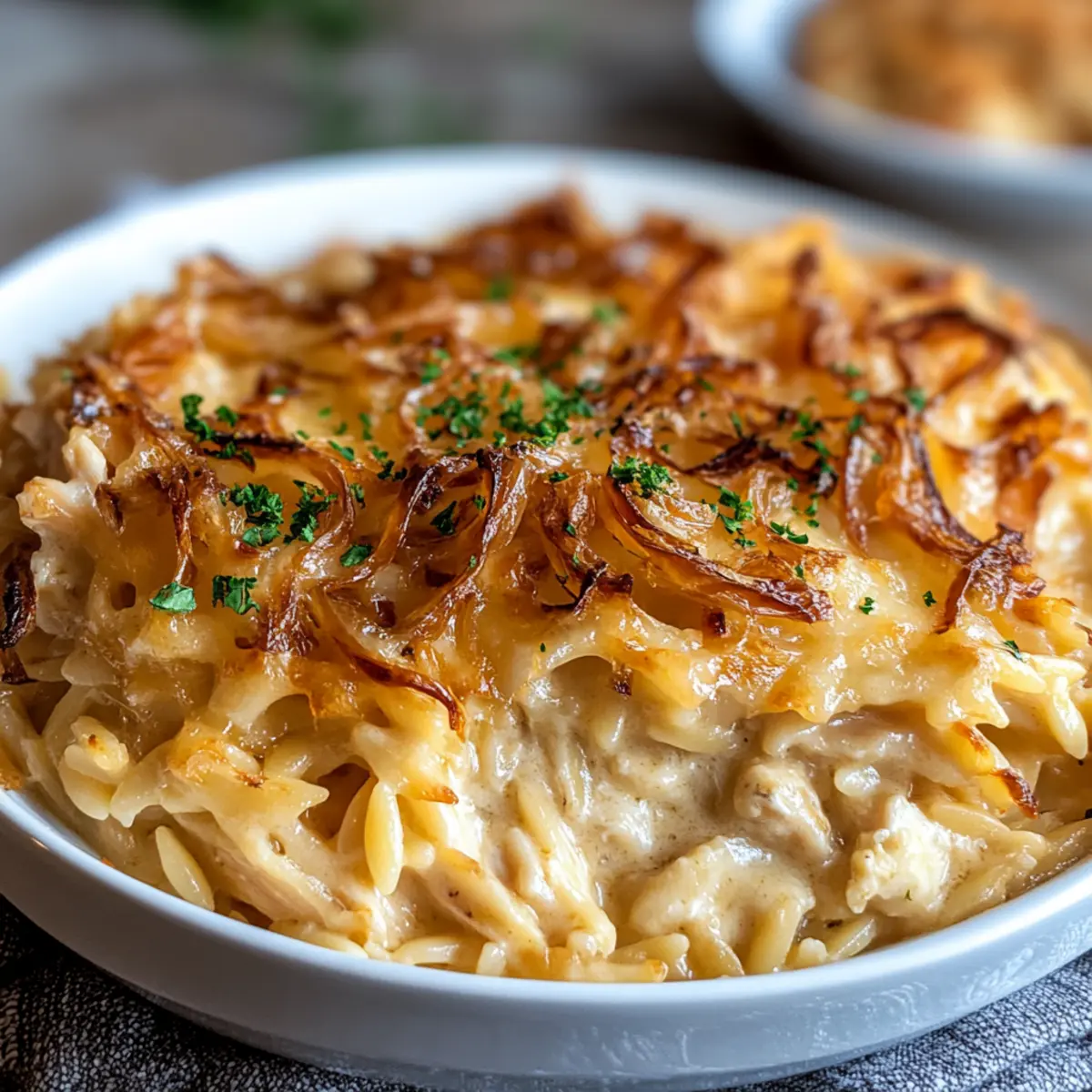 Savory French Onion Chicken Orzo Casserole for Cozy Nights