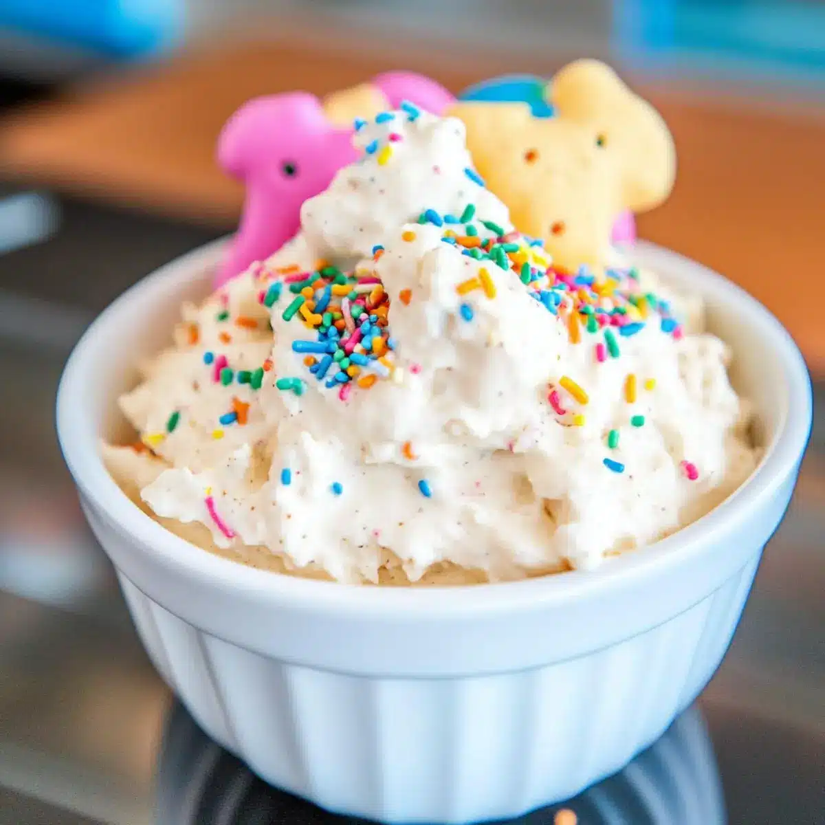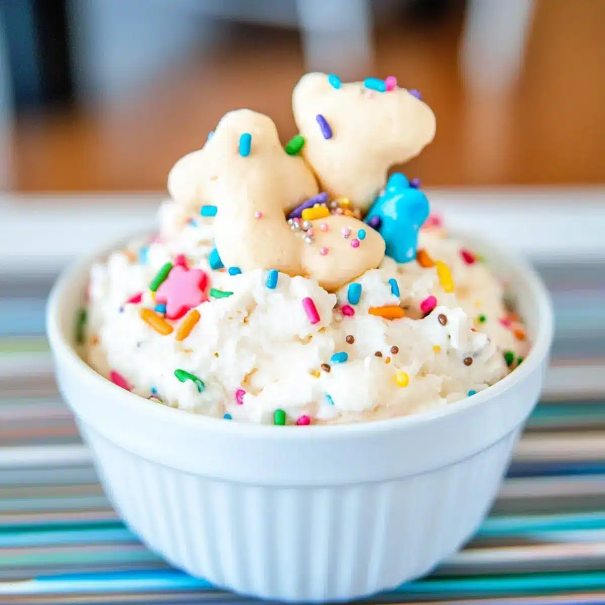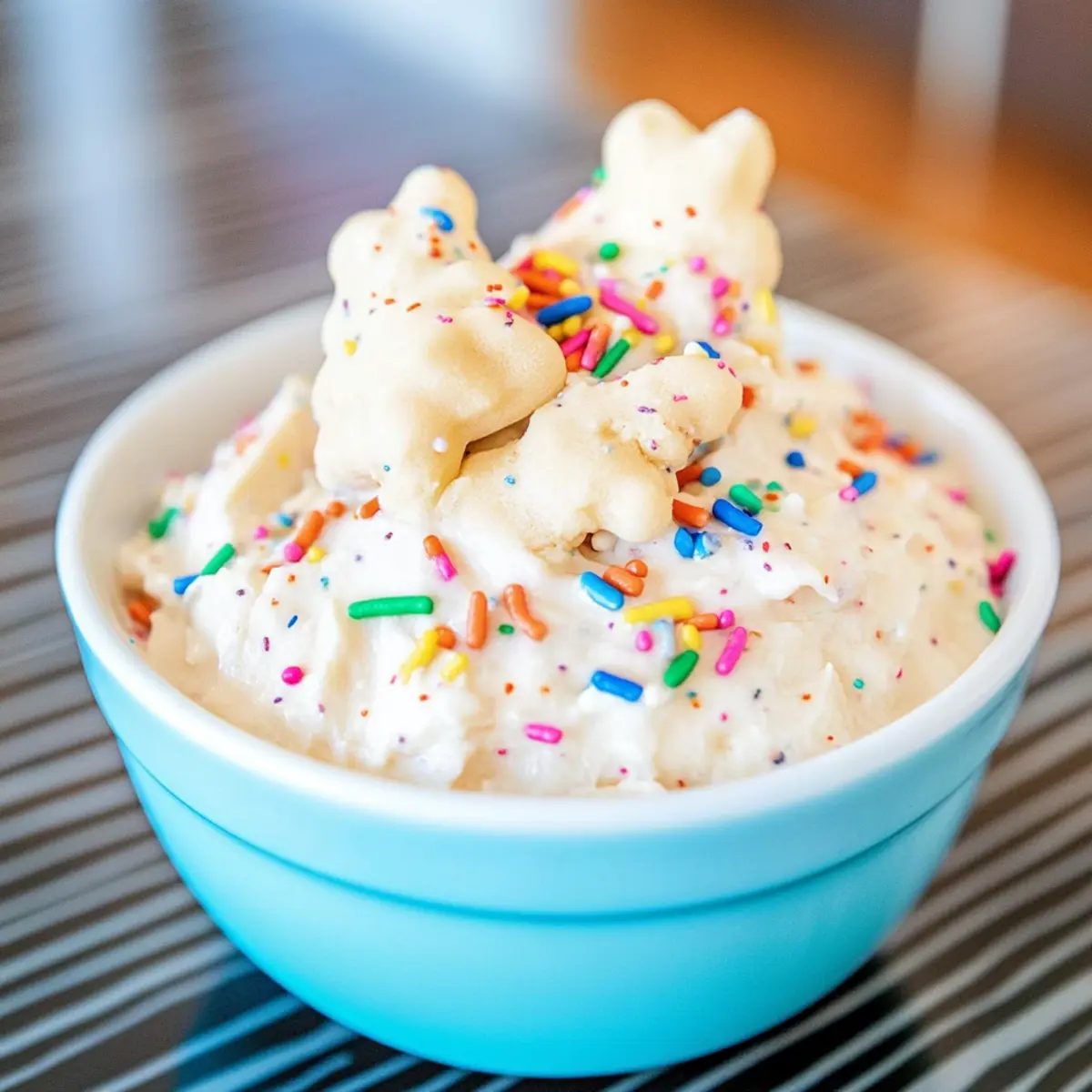 For a fun and colorful presentation, I suggest using a clear serving bowl to showcase the vibrant swirls of the sprinkles. Offer a variety of dippers like animal crackers, graham crackers, or fresh fruit such as strawberries and grapes to encourage everyone to find their favorite pairing!