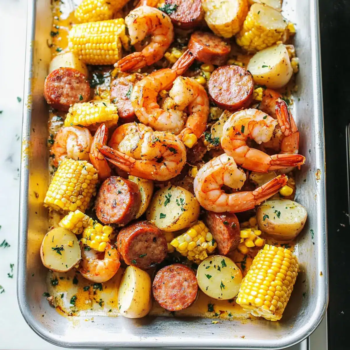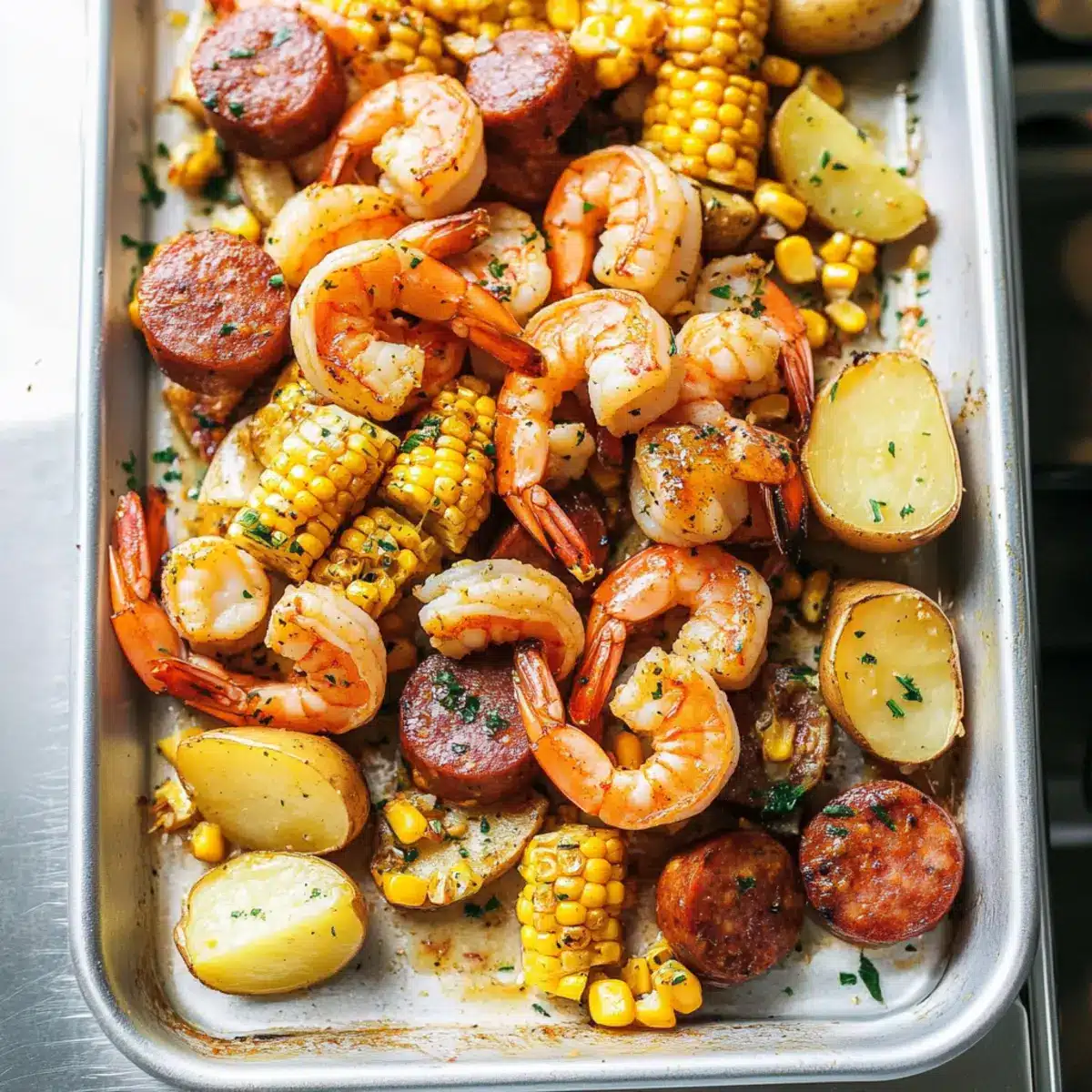 These Garlic Butter Shrimp Boil ingredients are perfect for meal prep enthusiasts! You can chop the potatoes, cut the corn, and slice the kielbasa sausage up to 24 hours in advance to save time on busy weeknights. Just store the prepped ingredients in airtight containers in the refrigerator to maintain their freshness. When you’re ready to cook, simply boil the potatoes for about 10 minutes, add the corn and sausage for an additional 5 minutes, and finish by adding the shrimp until they’re just pink (about 3-5 minutes). This way, you’ll enjoy a delicious Garlic Butter Shrimp Boil with minimal effort!