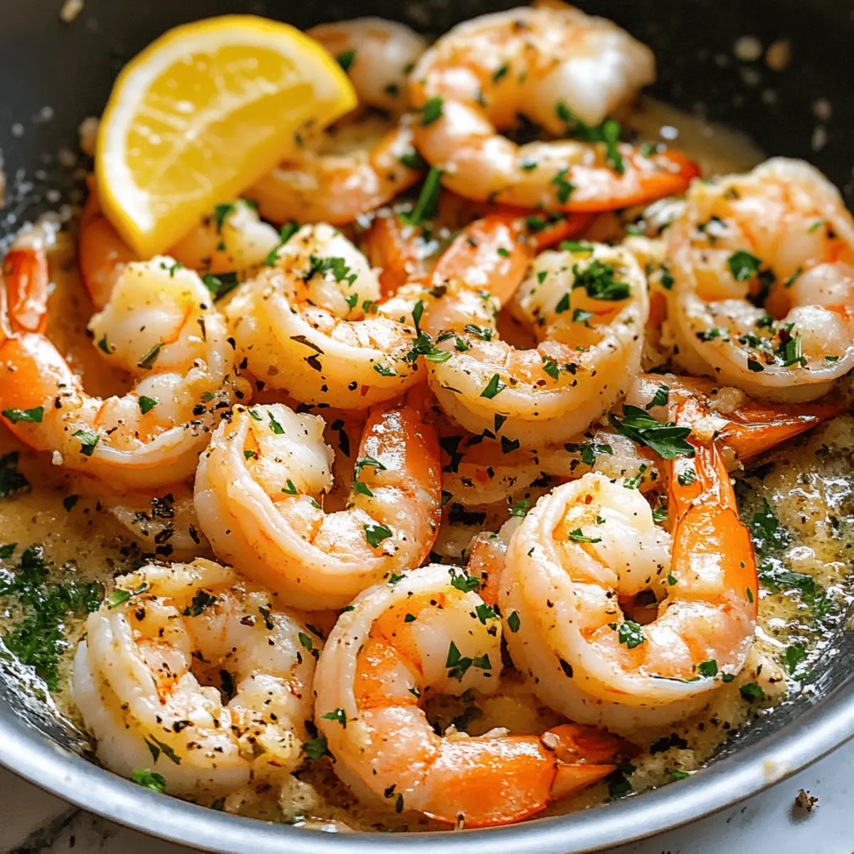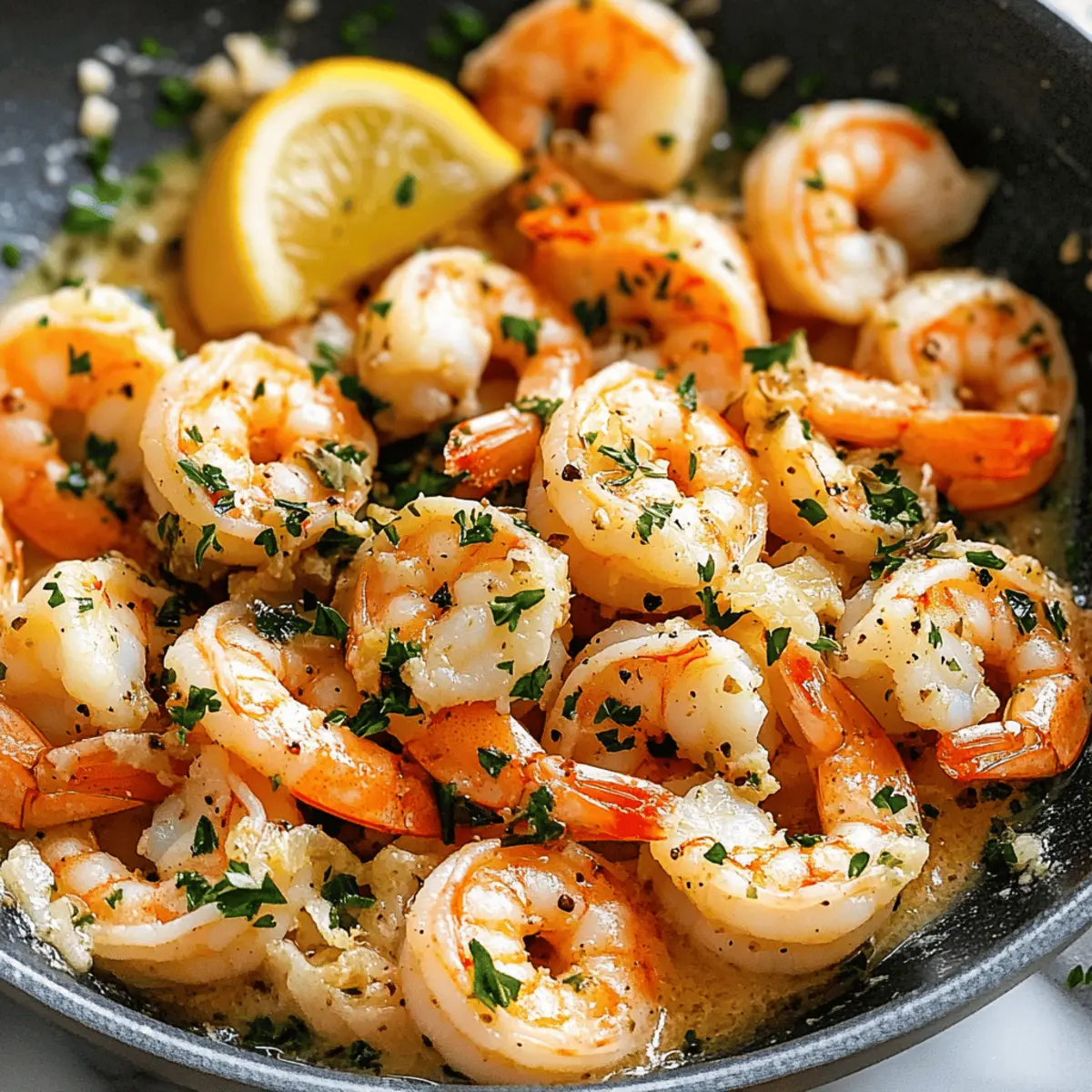 Remove the skillet from heat and stir in the remaining 2 tablespoons of butter, the juice of half a fresh lemon, and a handful of chopped fresh parsley. The butter will melt into the sauce, creating a creamy consistency that perfectly complements the shrimp, imparting that signature shine typical of a delicious Garlic Butter Shrimp Scampi.