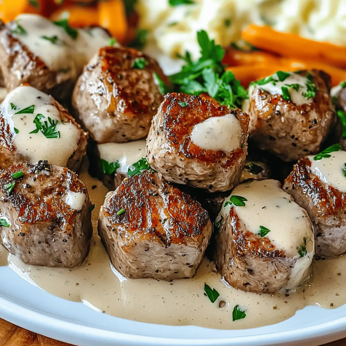 - Drizzle the sauce over the steak bites and garnish with parsley if desired.