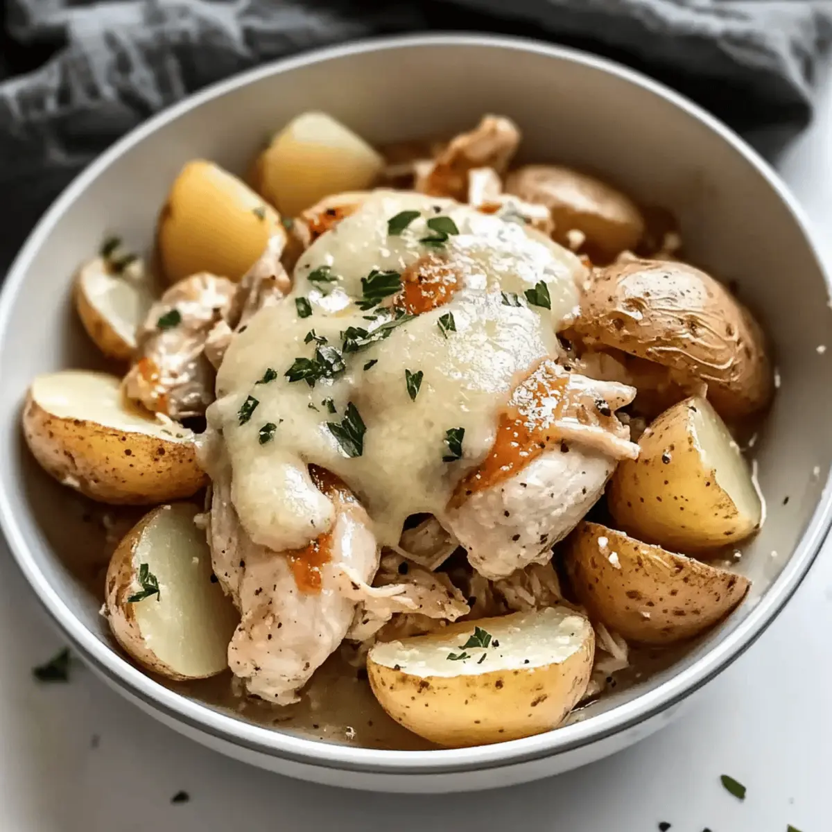 As I stood in my kitchen, the enticing aroma of garlic wafted through the air, pulling me closer to my beloved Slow Cooker Garlic Parmesan Chicken and Potatoes. This easy one-pot recipe has quickly become a culinary favorite in our home—a comforting meal that seamlessly transforms a busy evening into a heartwarming feast. With tender chicken and fluffy potatoes draped in a creamy garlic-Parmesan sauce, this dish is a delightful way to bring everyone together around the table. Not only does it require minimal prep, but it’s also incredibly customizable; whether you prefer chicken thighs for a juicier bite or want to toss in extra veggies, the options are plentiful. Are you ready to discover just how effortlessly satisfying this cozy dish can be?