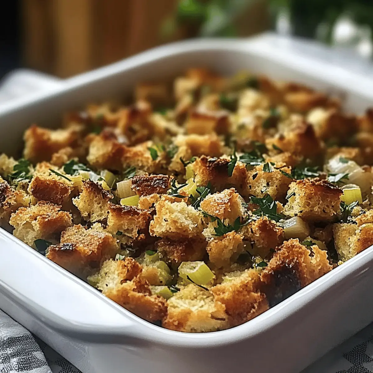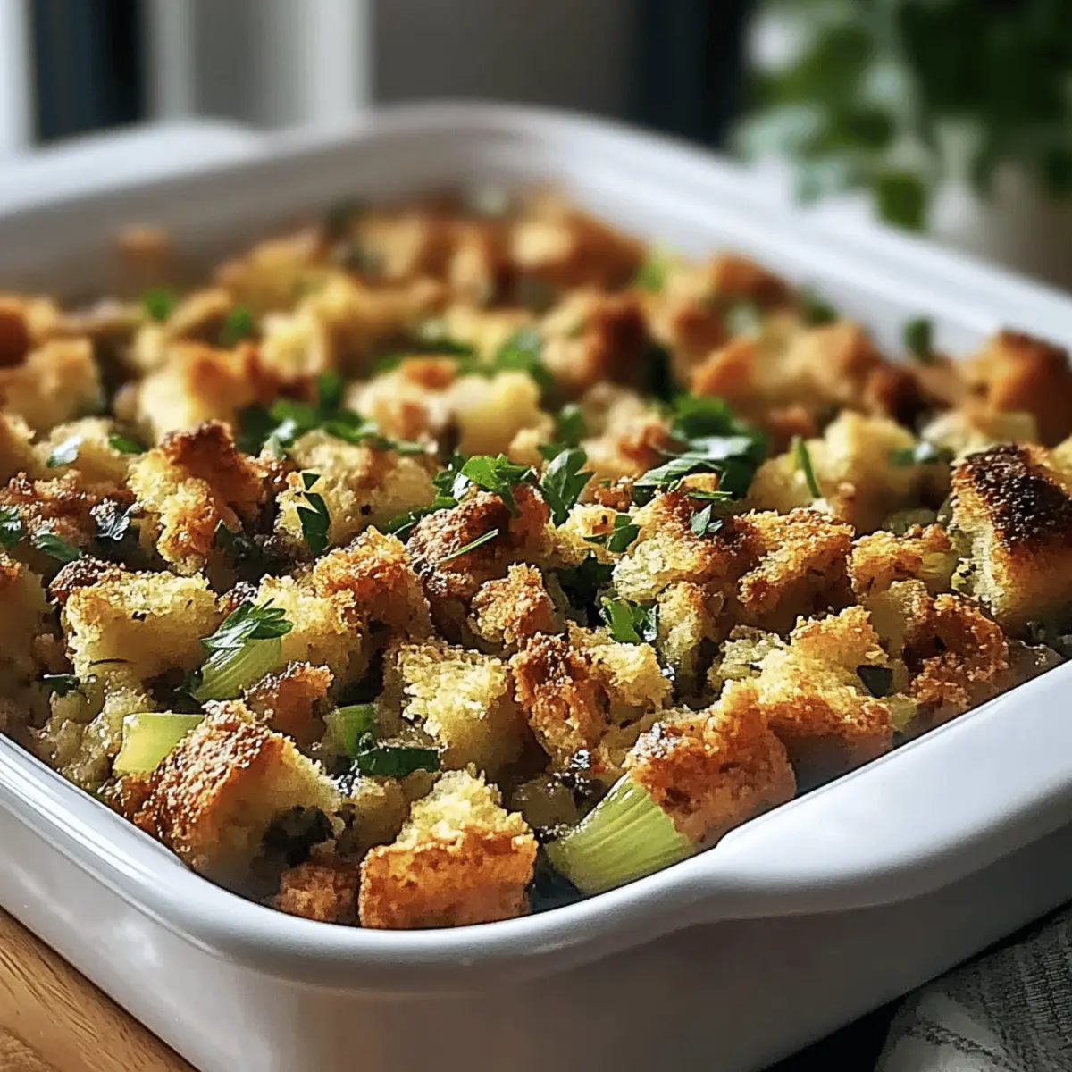 Garnish for Flair: After baking, consider garnishing the stuffing with fresh parsley for a pop of color and freshness. It enhances the visual appeal on your festive table.