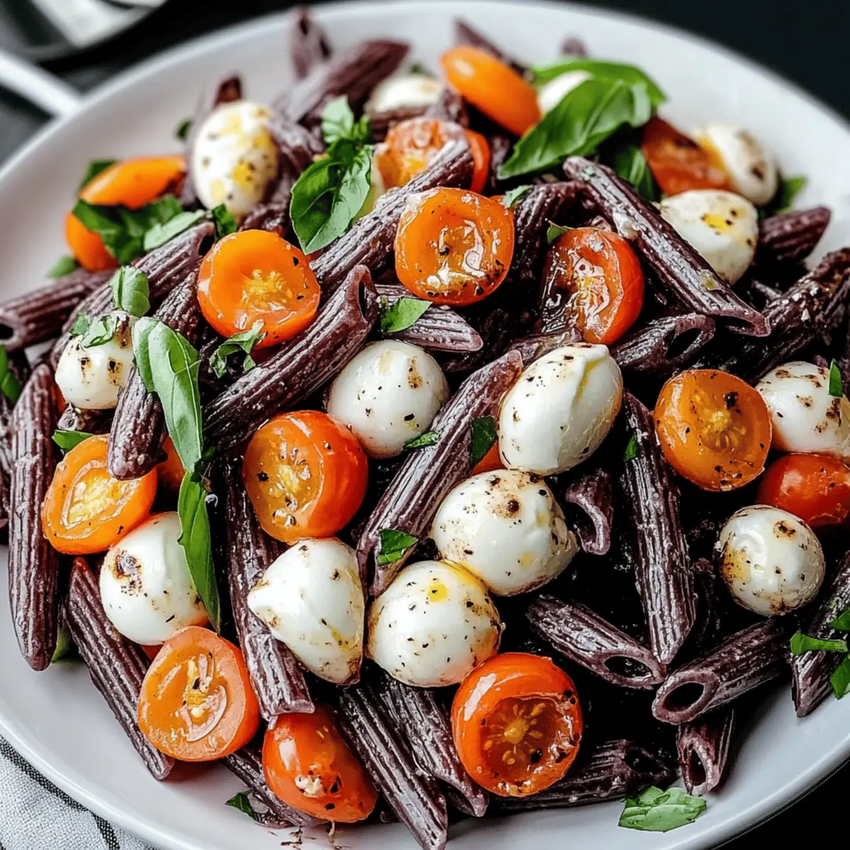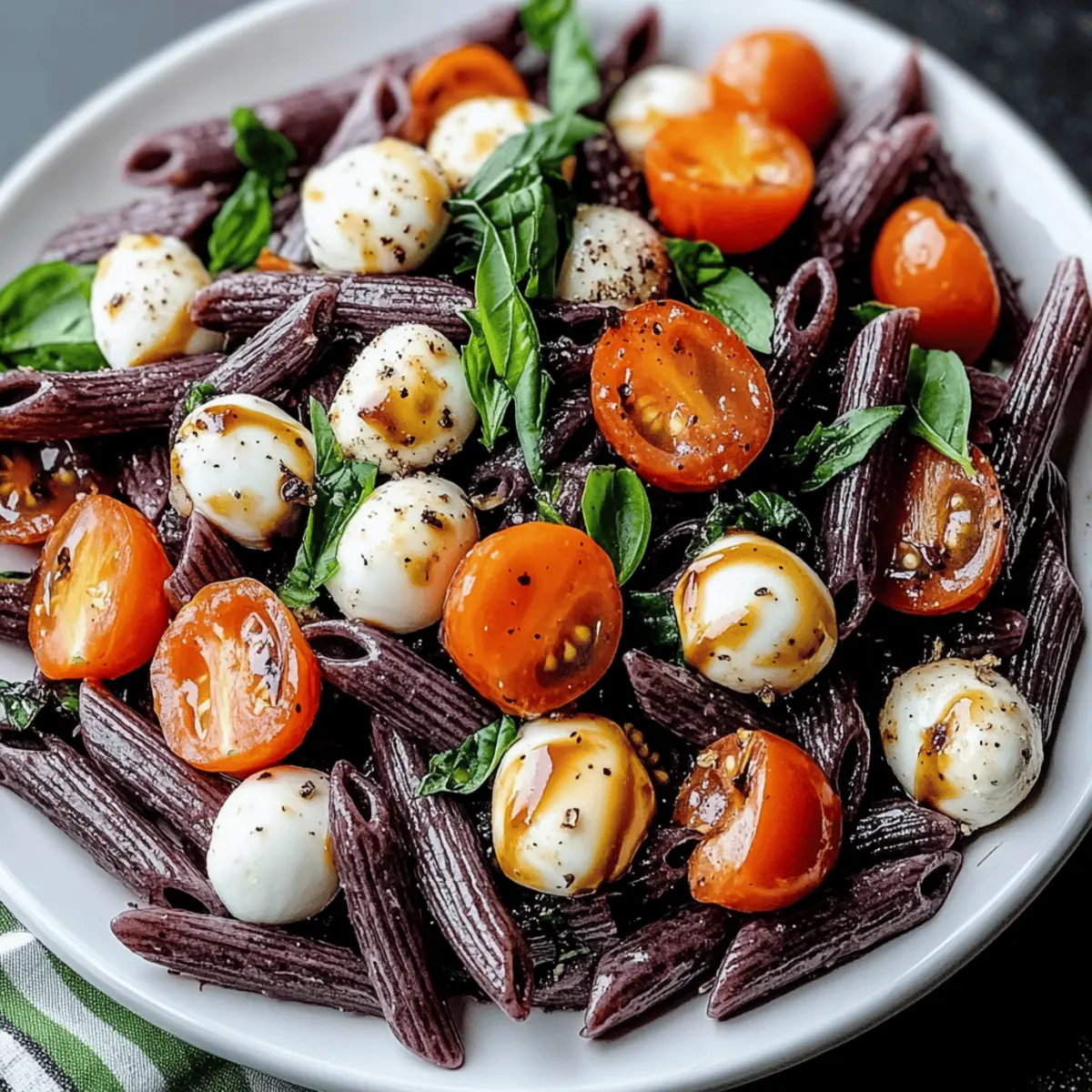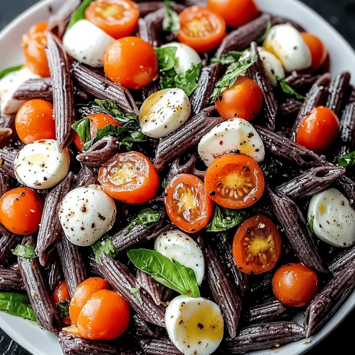 • Black Penne – The unique color and shape make it the perfect base for this Halloween Caprese Pasta Salad.