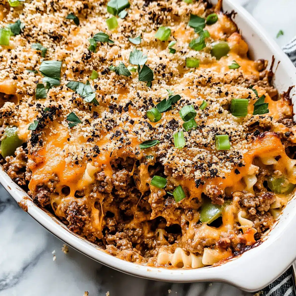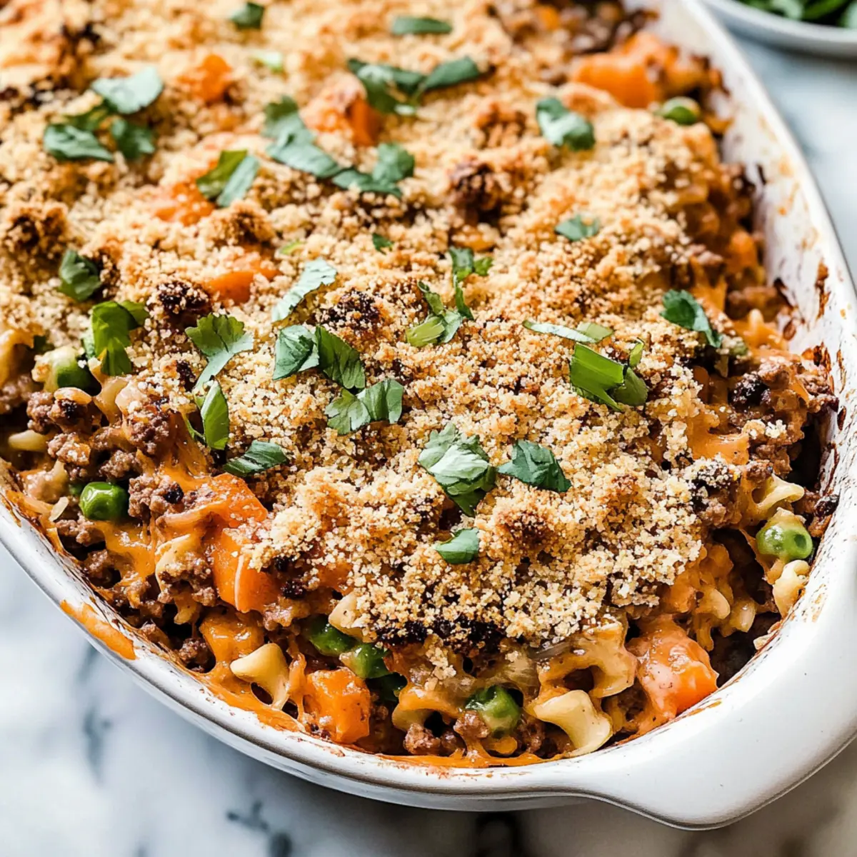 To achieve the perfect crispy topping, switch your oven setting to broil and watch closely for 2-3 minutes until the panko breadcrumbs are golden brown. This step adds an irresistible crunch to your Hamburger Casserole, enhancing texture and flavor.