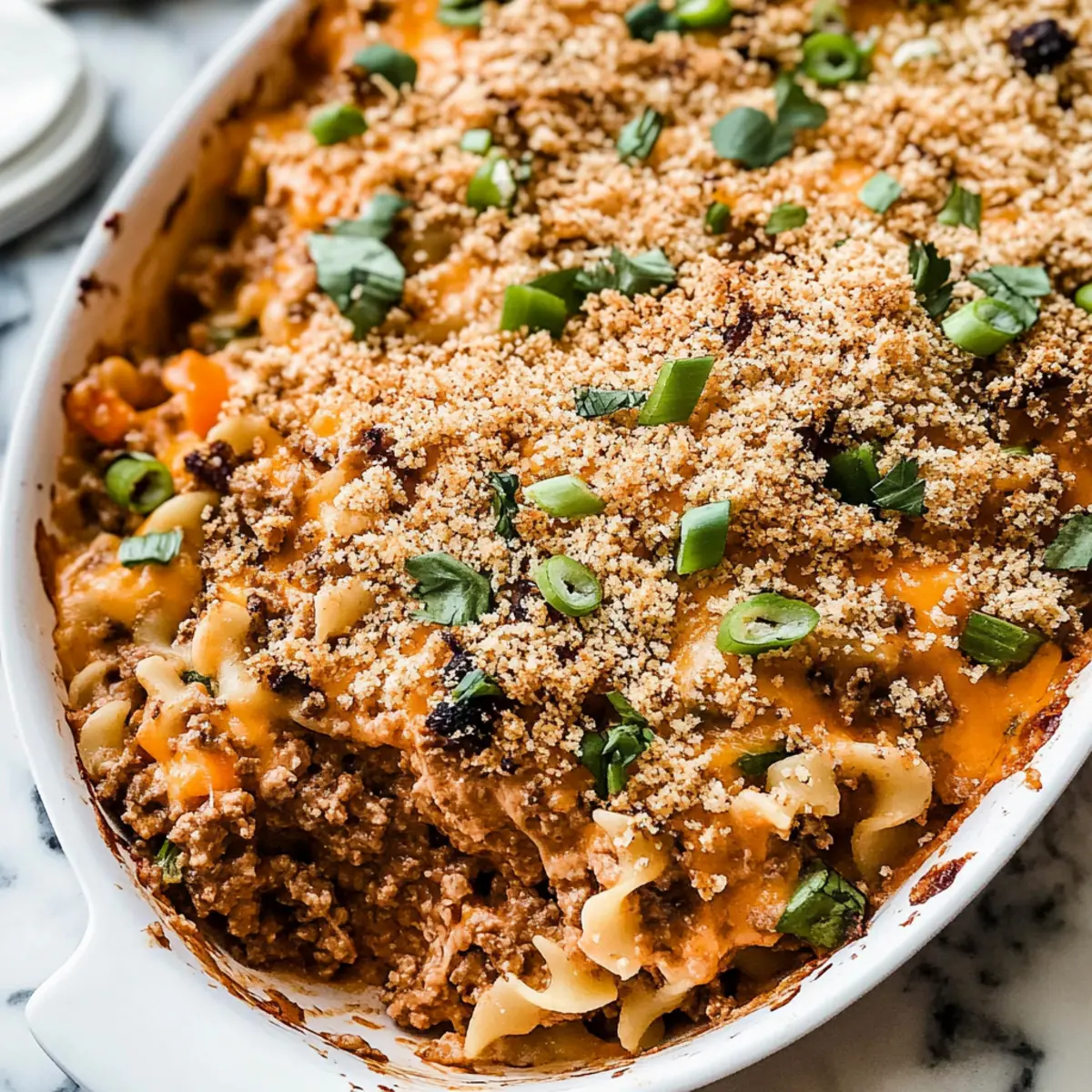 Comforting and indulgent, this casserole marries rich flavors with nutritious ingredients for a guilt-free indulgence. Family-friendly and incredibly versatile, you can swap out ground beef for leaner options like turkey or chicken. Quick to prepare, this dish saves time on busy nights while providing a hearty meal that even picky eaters will love. Creamy goodness meets crisp perfection with a topping of panko breadcrumbs, adding delightful texture contrasted with cheesy noodles. Pair it with a refreshing side salad for an easy dinner—just like an Amish Hamburger Steak or enjoy leftovers with a simple green salad.