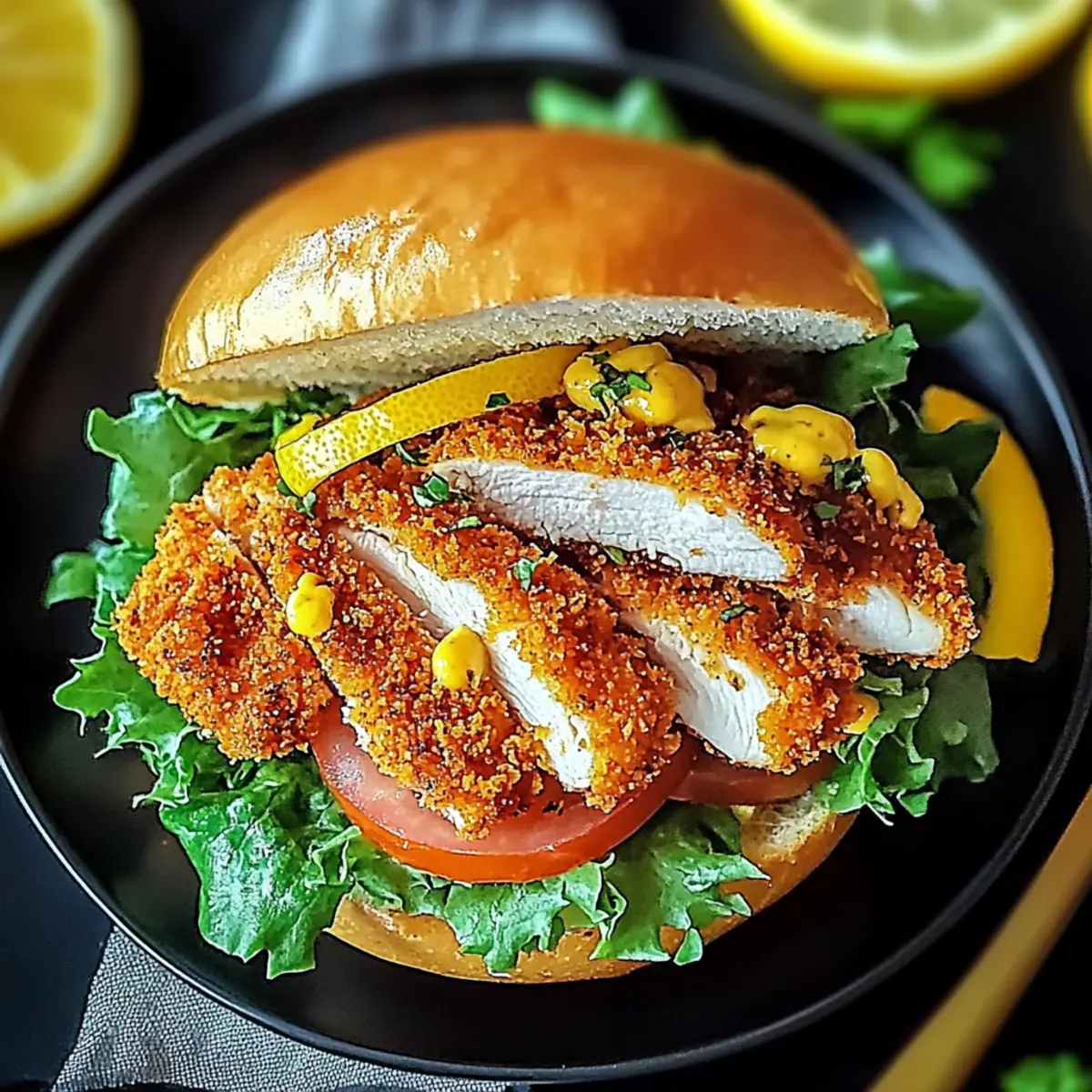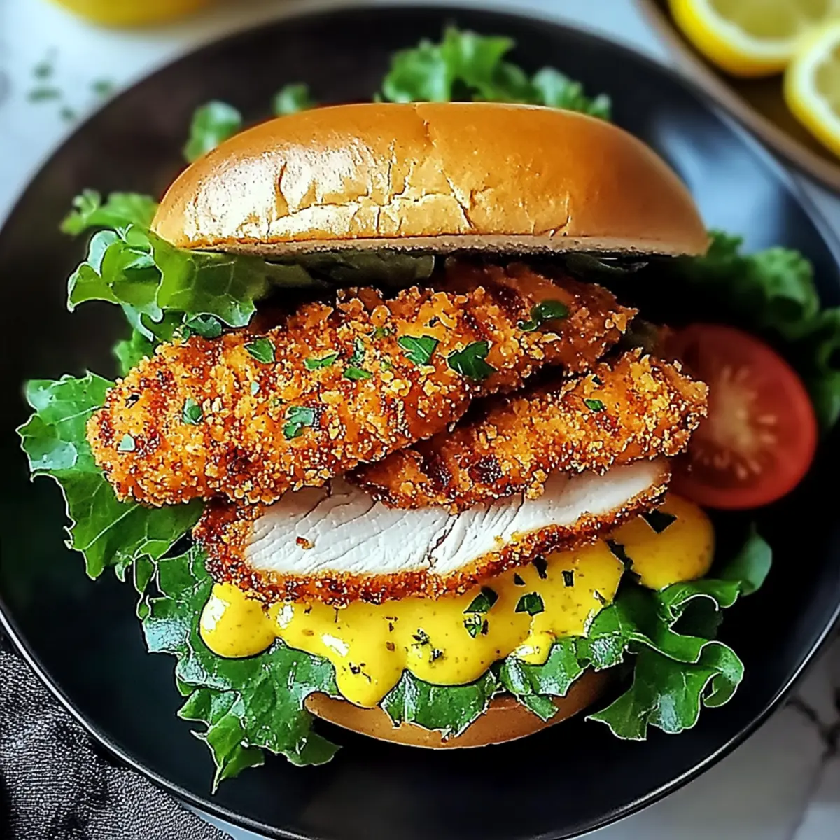 Spread the prepared lemon mustard sauce evenly on the toasted buns. Layer in the crispy chicken, followed by shredded lettuce, fresh tomato slices, and a sprinkle of chopped parsley for color and flavor. This assembly process transforms simple ingredients into a vibrant, mouthwatering sandwich.