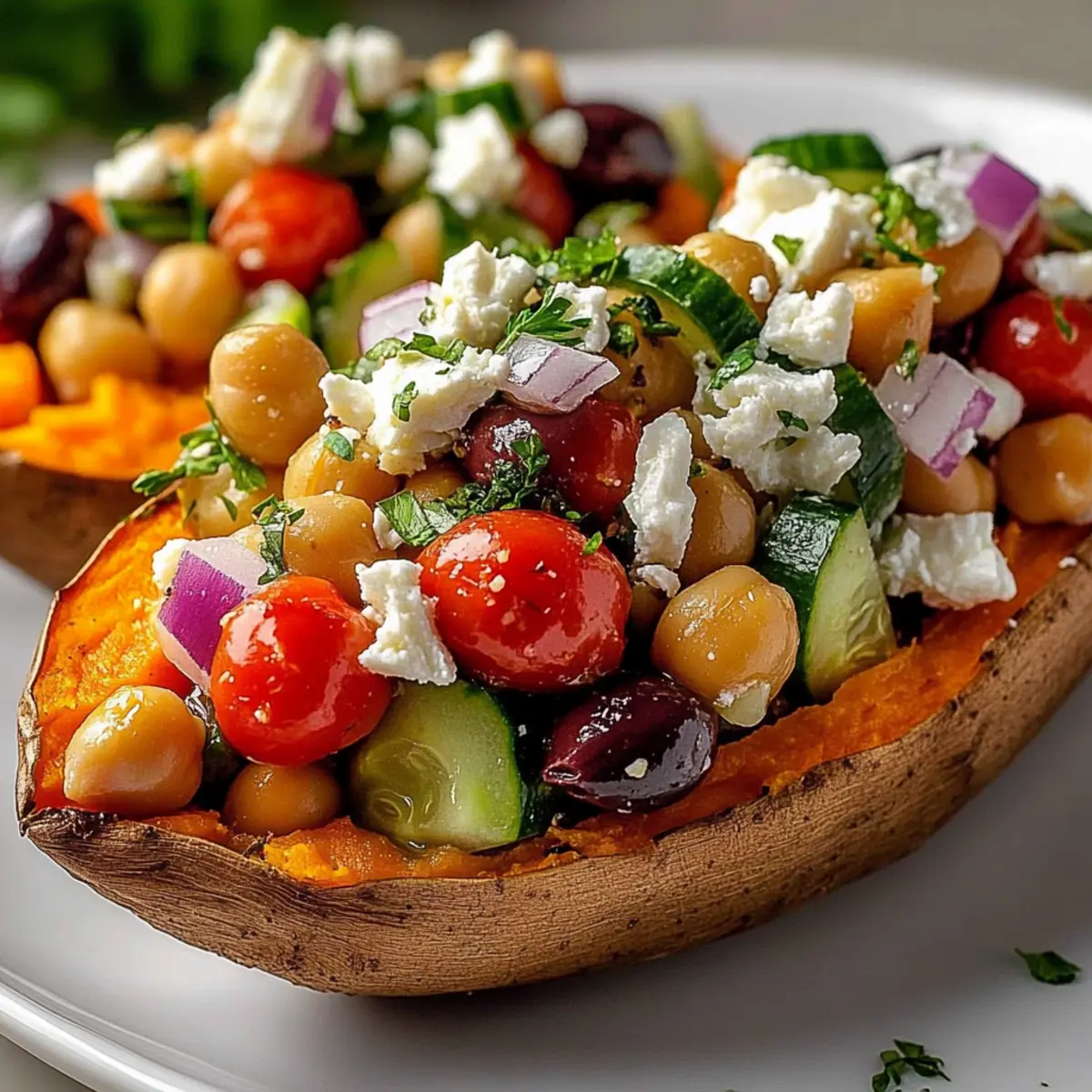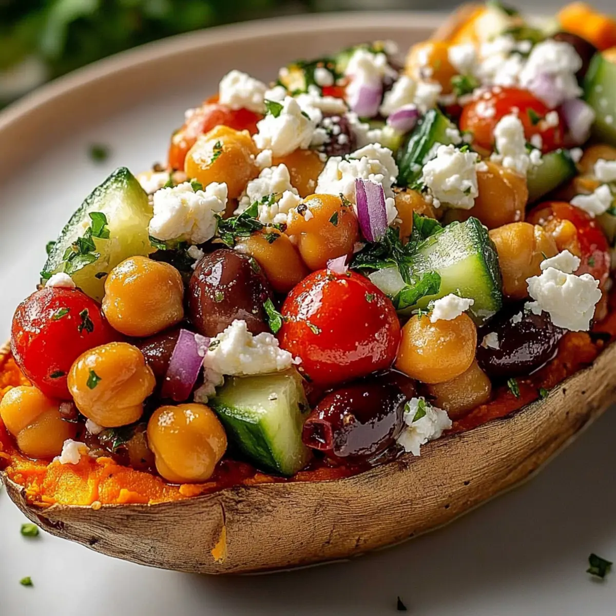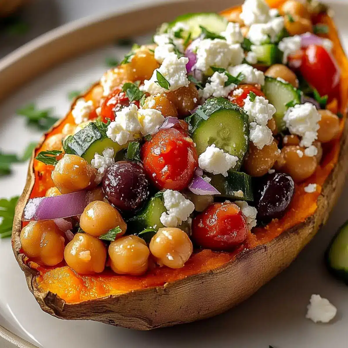 Fresh Ingredients: Always use fresh herbs and vegetables; they enhance the flavor and overall experience of your Mediterranean stuffed sweet potatoes.