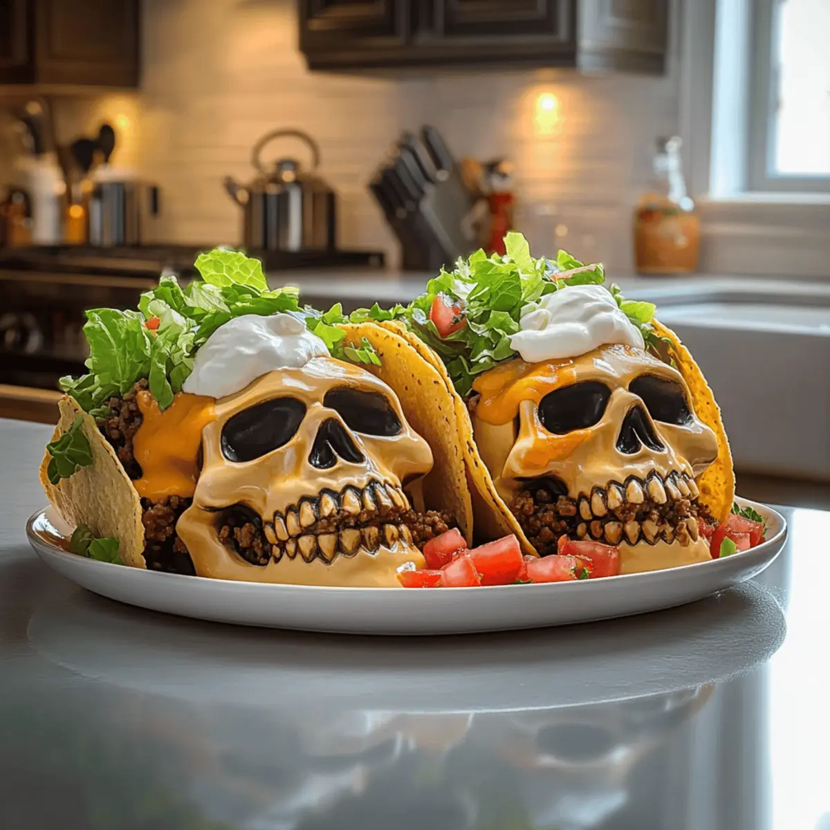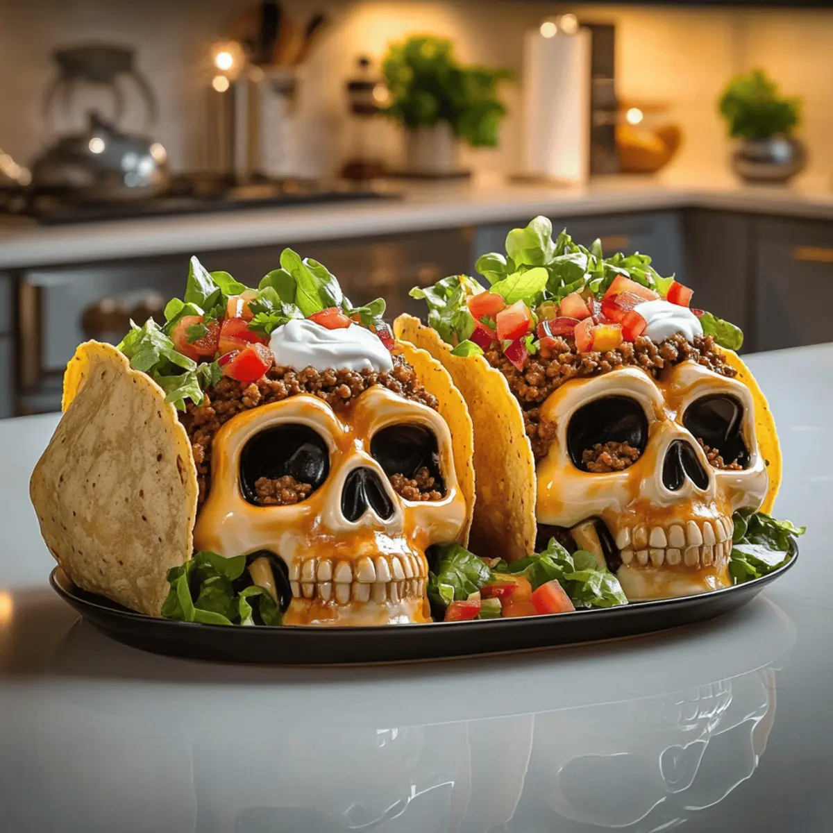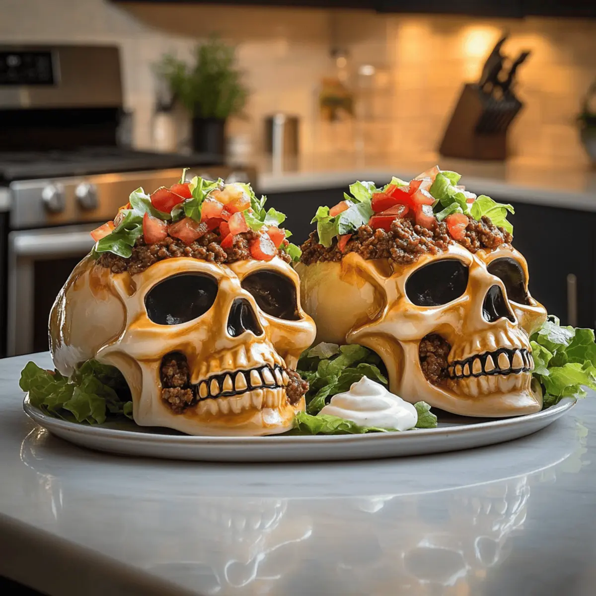 Absolutely! To freeze your taco skulls, wrap them individually in plastic wrap and place them in a freezer-safe container or a resealable freezer bag. They can stay in the freezer for up to 1 month. When ready to eat, simply reheat them in the oven at 350°F (175°C) for about 10 minutes. This will help restore their crunchiness!