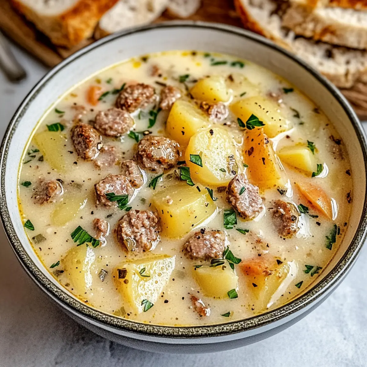 Rich, Comforting Flavors: The blend of savory sausage and creamy potatoes creates a warm embrace for your taste buds, making it the perfect remedy for gloomy days.