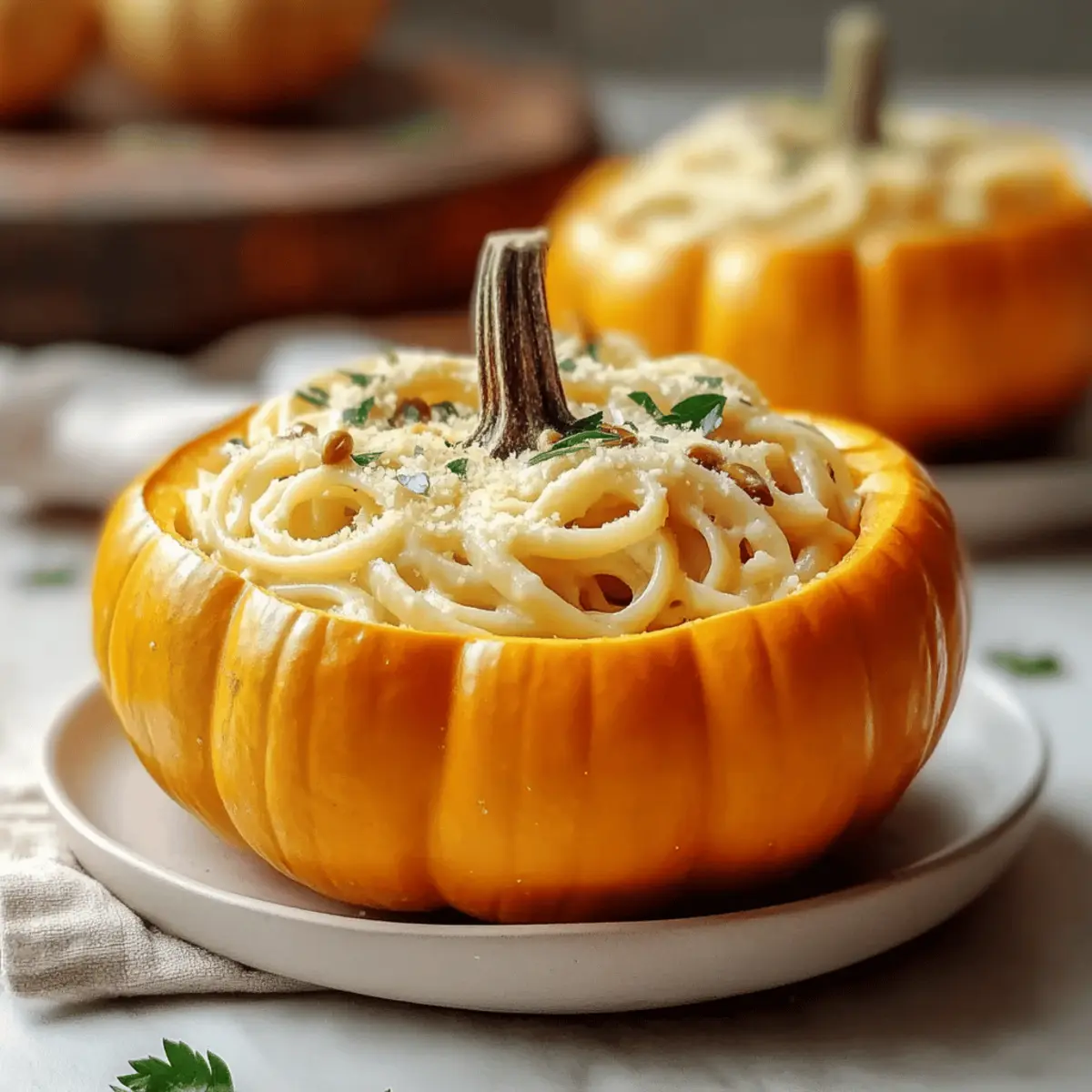 These Pumpkin Alfredo Pasta Cauldrons are perfect for meal prep enthusiasts! You can roast the mini pumpkins and prepare the Alfredo sauce up to 24 hours in advance. Simply store them in airtight containers in the refrigerator, ensuring they stay fresh and delicious. When you’re ready to serve, cook the fettuccine fresh—this helps maintain its texture, preventing it from becoming mushy. To finish, just reheat the sauce gently, toss it with the cooked pasta, and fill the roasted pumpkins before garnishing with parsley and pumpkin seeds. This way, you’ll have a warm, festive dish ready to impress with minimal effort!
