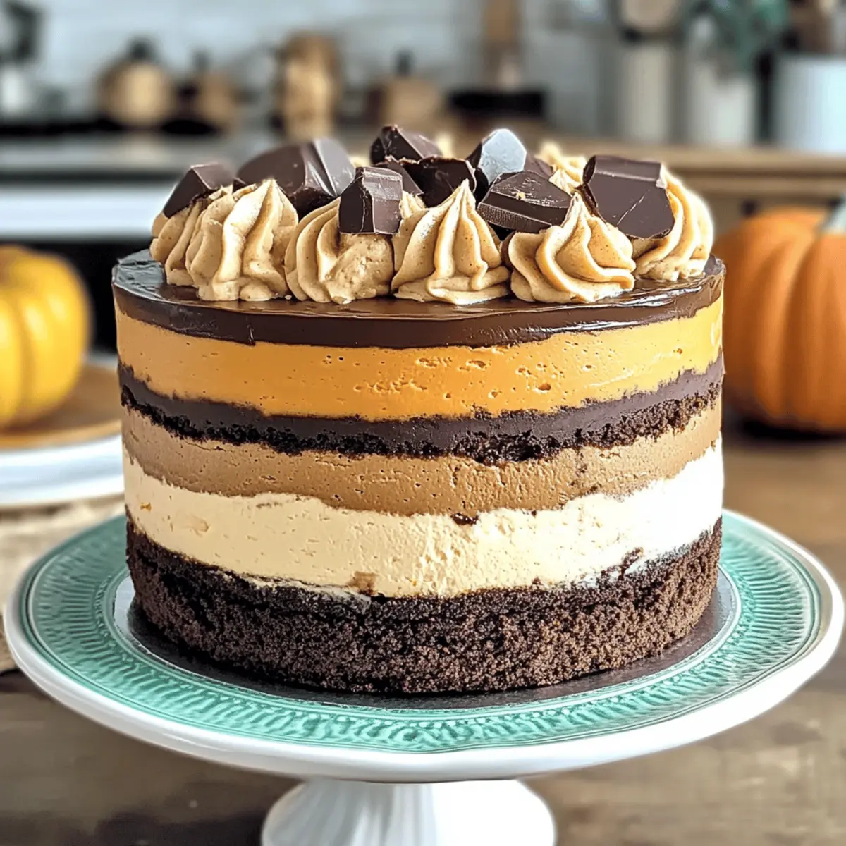 Irresistible Layers: Each slice of this Pumpkin Chocolate Mousse Cake is a visual delight, boasting four distinct layers that not only look stunning but also provide a symphony of flavors.